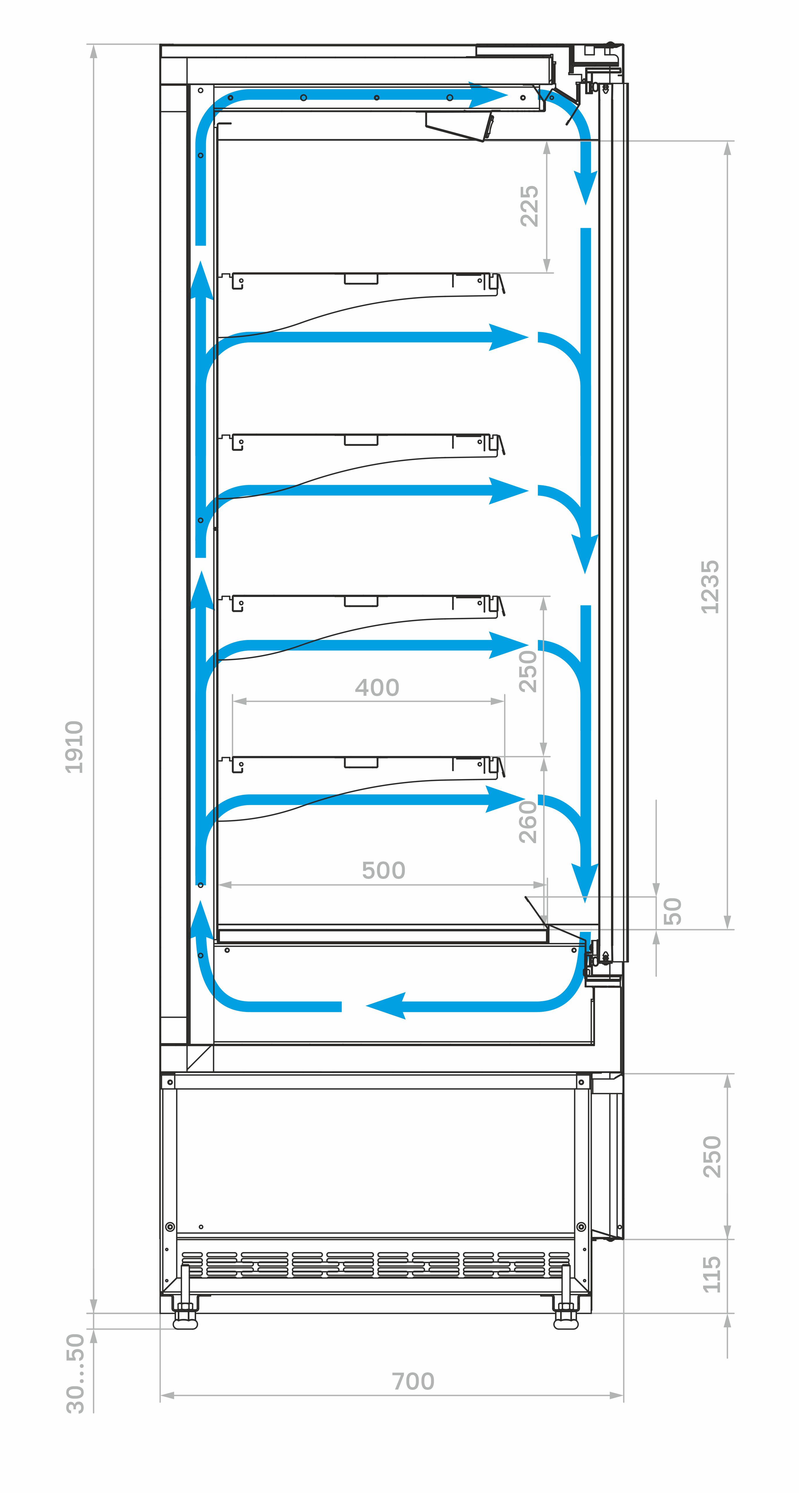 Горка холодильная Carboma FC20-07 VM 2,5-1 0300 LIGHT фронт Х0 (версия 2,0) (9006-9005) (бок металл) предназначена для использования на предприятиях общественного питания и торговли. Применяется для охлаждения, кратковременного хранения и предпродажной демонстрации напитков, мяса, птицы, полуфабрикатов, молочных и гастрономических изделий.