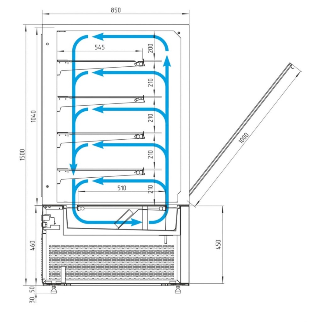 Витрина оснащена динамической системой охлаждения, которая обеспечивает равномерное распределение температуры по всей камере. Корпус из стали и пластика с пенополиуретановой изоляцией гарантирует высокую энергоэффективность и стабильные условия хранения.