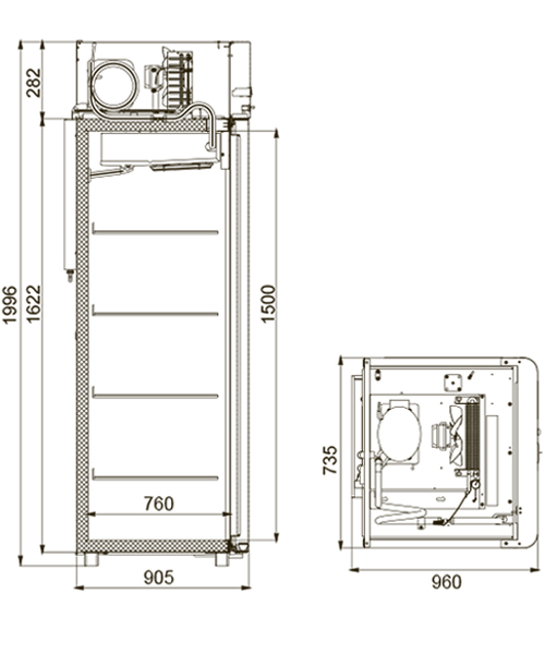 Каталог оборудования Холодильное оборудованиеШкафы холодильныеШкафы морозильные низкотемпературные до -18 °СШкаф морозильный Polair CB107-Sm Alu Шкаф морозильный Polair CB107-Sm Alu Код товара: 062-592 Поделиться: WhatsAppTelegram СравнитьДобавить в КПВ избранное 0 149 175 ₽ В корзину 0 шт Под заказСамовывоз сегодня бесплатно Взять в кредит Купить в лизинг Получить консультацию в WhatsApp Описание Характеристики Отзывы 0 Инструкции 4 Шкаф морозильный Polair CB107-Sm Alu предназначен для демонстрации и надежного хранения продуктов на предприятиях общественного питания и торговли. Цельнозаливной корпус выполнен из стали с полимерным покрытием и дополнен алюминиевыми профилями, что обеспечивает высокую механическую прочность и долговечность конструкции. Алюминиевые элементы дверей и верхней панели подчеркивают современный и премиальный дизайн. Шкаф стабильно работает при температуре окружающей среды до +40 °С и относительной влажности воздуха до 80%, сохраняя продукты в оптимальных условиях. Основные особенности: Электронный блок управления с жидкокристаллическим дисплеем Верхнее расположение агрегата, обеспечивающее удобный доступ к внутреннему объему Клапан Шредера для обслуживания системы охлаждения Компенсационный клапан с ПЭНом обогрева для предотвращения перепадов давления ПЭН обогрева трубки слива конденсата и ПЭН обогрева дверного проема для защиты от наледи Распашной тип дверей с возможностью изменения стороны открывания Интегрированные ручки, встроенные в алюминиевые профили дверей Эластичные уплотнители с магнитными вставками, обеспечивающие максимальную герметизацию Встроенная внутренняя подсветка для удобного обзора содержимого Микропереключатель, отключающий вентилятор и включающий подсветку при открытии двери Регулируемые по высоте ножки и педаль для открывания двери, повышающие эргономику использования Замок для безопасного хранения продукции 4 полки формата GN 2/1 (530×650 мм) с допустимой нагрузкой до 40 кг Толщина теплоизоляции корпуса — 61 мм Изображение товара, представленного на фото, может отличаться от его фактического вида. Показать все Габаритные размеры735×945×1996 ммДиапазон рабочей температурыдо -18 °CДлина735 ммГлубина450 ммВысота1996 ммОбъём700 лМатериал корпусаНержавеющая сталь Тип управленияМеханическое Расход электроэнергии в сутки12 кВтКоличество полок2 штКоличество дверей1 штЗамокЕсть Тип двериМеталлическая Способ открыванияРаздвижные (купе) Напряжение220 ВХладагентR290 Расположение агрегатаНижнее Габариты в упаковке850×988×2160 ммВес нетто128 кгВес брутто152 кгБрендPolair Оставить отзыв Еще никто не оставил отзыв на этот товар Схема POLAIR CB107-Sm.jpgИнструкция на POLAIR CB107-Sm.pdfСертификат соответствия.pdfДекларация о соответствии.pdf Похожие товары Перейти в каталог Под заказ 134 034 ₽ Шкаф морозильный Abat ШХн-0,7 В наличии 161 420 ₽ Шкаф холодильный низкотемпературный Arkto F1.0-S В наличии 106 137 ₽ Шкаф морозильный Рапсодия R 700 L Под заказ 163 200 ₽ Шкаф морозильный Polair Polair CB107-Gm Alu В наличии 117 045 ₽ Шкаф морозильный Polair DB105-S Под заказ 127 413 ₽ Шкаф холодильный низкотемпературный Arkto F0.7-G В наличии 155 469 ₽ Шкаф морозильный Рапсодия R 1400 L Под заказ 203 827 ₽ Шкаф морозильный Abat ШХн-1,4 С этим товаром покупают Под заказ 136 482 ₽ Витрина морозильная Ариада Ариэль ВН3-150 Под заказ 248 285 ₽ Шкаф холодильный Apach Cook Line F1400TN DOM PLUS В наличии 140 675 ₽ Шкаф холодильный универсальный Po