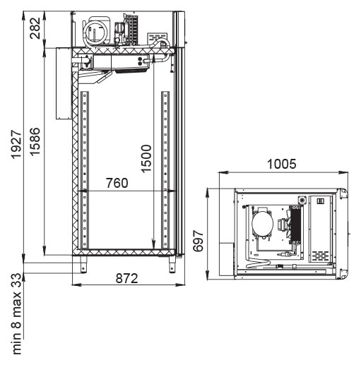 Каталог оборудования Холодильное оборудованиеШкафы холодильныеСпециализированные холодильные шкафыШкаф холодильный для вызревания салями Polair CS107 Salami Шкаф холодильный для вызревания салями Polair CS107 Salami Код товара: 009-391 Поделиться: WhatsAppTelegram СравнитьДобавить в КПВ избранное 0 390 915 ₽ В корзину 0 шт Под заказСамовывоз сегодня бесплатно Взять в кредит Купить в лизинг Получить консультацию в WhatsApp Описание Характеристики Отзывы 0 Инструкции 5 Шкаф холодильный для вызревания салями Polair CS107 Salami предназначен для приготовления и хранения салями, сыровяленых колбас и других мясных деликатесов на предприятиях общественного питания и торговли. Монолитный цельнозаливной корпус выполнен из нержавеющей стали снаружи и внутри (кроме задней стенки), что обеспечивает высокую прочность, устойчивость к коррозии и долгий срок службы. Оборудование рассчитано на работу при температуре окружающей среды до +40 °С. Особенности: Верхнее расположение агрегата Русифицированная многофункциональная панель управления с дисплеем диагональю 5" Возможность создания и сохранения индивидуальных программ Три уровня подвесов с тремя перекладинами и крюками на каждом для развески колбас Встроенный ультразвуковой увлажнитель (требуется подключение к системе подачи очищенной воды и к канализации) UV-лампа для обеззараживания воздуха внутри камеры Регулируемый уровень влажности: от 60 до 95 % Распашная дверь с заливной теплоизоляцией, встроенной ручкой и магнитным уплотнителем Отключаемая внутренняя LED-подсветка Штампованное углубление в дне корпуса для удобства ухода Педаль для комфортного открытия двери Толщина стенки корпуса: 43 мм POLAIR CS107 Salami — это профессиональное решение для предприятий, специализирующихся на производстве мясных деликатесов. Шкаф обеспечивает точный контроль температуры и влажности, способствует правильной ферментации и дозреванию продукции, а также гарантирует гигиеничность и удобство эксплуатации. Это надёжное оборудование поможет сохранить вкус, текстуру и качество готовых изделий на высоком уровне.Изображение товара, представленного на фото, может отличаться от его фактического вида. Показать все Габаритные размеры697×1005×1960 ммДиапазон рабочей температурыот -2 до +30 °CДлина697 ммШирина1005 ммВысота1960 ммОбъём700 лКол-во дверей1 Тип двериМеталлическая Уровень влажностиот 60 до 95 %Холодильный агрегатВстроенный Тип оттайкиАвтоматическая Тип охлажденияДинамическое ПодсветкаЕсть UV-лампаДа ХладагентR290 Вес нетто144 кгВес брутто171 кгБрендPolair Оставить отзыв Еще никто не оставил отзыв на этот товар Схема POLAIR CS107 Salami.jpgИнструкция на POLAIR CS107 Salami.pdfБрошюра на POLAIR CS107 Salami.pdfДекларация о соответствии.pdfСертификат соответствия.pdf Похожие товары Перейти в каталог Под заказ 389 300 ₽ Шкаф холодильный для вызревания мяса Polair CS107 Meat (Тип 1) Под заказ 391 000 ₽ Шкаф холодильный для вызревания мяса Polair CS107 Meat (Тип 2) С этим товаром покупают Под заказ 97 500 ₽ Конвекционная печь Abat КЭП-3 Ранее просмотрено Под заказ 79 296 ₽ Витрина холодильная Ангара 2 - 1,5