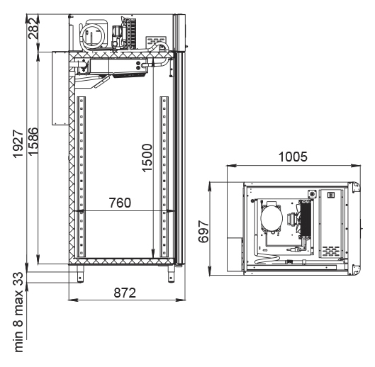 Каталог оборудования Холодильное оборудованиеШкафы холодильныеСпециализированные холодильные шкафыШкаф холодильный для вызревания сыра Polair CS107 Cheese полки нерж., со стеклом Шкаф холодильный для вызревания сыра Polair CS107 Cheese полки нерж., со стеклом Код товара: 062-630 Поделиться: WhatsAppTelegram СравнитьДобавить в КПВ избранное 0 397 800 ₽ В корзину 0 шт Под заказСамовывоз сегодня бесплатно Взять в кредит Купить в лизинг Получить консультацию в WhatsApp Описание Характеристики Отзывы 0 Инструкции 5 Шкаф холодильный для вызревания сыра Polair CS107 Cheese полки нерж., со стеклом предназначен для создания оптимальных условий хранения и дозревания твердых и полутвердых сыров на предприятиях общественного питания и торговли. Монолитный цельнозаливной корпус изготовлен из нержавеющей стали снаружи и изнутри (кроме задней стенки), что обеспечивает высокую прочность и долговечность шкафа. Дверь выполнена из стеклопакета. Оборудование рассчитано на работу при температуре окружающей среды до 40 °С. Особенности: Верхнее расположение агрегата Многофункциональная русифицированная контрольная панель с 5-дюймовым дисплеем Возможность создания и сохранения собственных программ в памяти электронного блока Четыре перфорированные полки из нержавеющей стали Встроенный ультразвуковой увлажнитель (требуется подключение к системе очищенной воды и централизованной канализации) Распашная дверь с заливной теплоизоляцией Заменяемый уплотнитель двери с магнитной вставкой Встроенная ручка для удобства открытия Отключаемая внутренняя LED-подсветка Штампованное углубление в дне корпуса для удобства очистки Педаль для бесконтактного открывания двери Регулировка уровня влажности от 60% до 95% Максимальная нагрузка на полку — 40 кг Толщина стенки корпуса — 43 мм Polair CS107 Cheese полки нерж., со стеклом — надежный и функциональный холодильный шкаф, обеспечивающий оптимальные условия для хранения и дозревания твердых и полутвердых сыров. Благодаря прочному корпусу, точному контролю температуры и влажности, а также современным технологиям увлажнения и управления, оборудование способствует сохранению качества и вкусовых характеристик продукции, повышая эффективность работы предприятий питания и торговли.Изображение товара, представленного на фото, может отличаться от его фактического вида. Показать все Габаритные размеры697×1005×1960 ммДиапазон рабочей температурыот -2 до +30 °CДлина697 ммШирина1005 ммВысота1960 ммОбъём700 лКол-во дверей1 Тип двериСтеклянная Количество полок4 штДопустимая нагрузка на полку40 кгУровень влажностиот 60 до 95 %Холодильный агрегатВстроенный Тип оттайкиАвтоматическая Тип охлажденияДинамическое ПодсветкаЕсть ХладагентR290 Вес нетто160 кгВес брутто190 кгБрендPolairВсе специализированные холодильные шкафы Из нержавейкиВсе специализированные холодильные шкафы Стеклянная дверь Оставить отзыв Еще никто не оставил отзыв на этот товар Схема POLAIR CS107 Cheese.jpgИнструкция на POLAIR CS107 Cheese.pdfБрошюра на POLAIR CS107 Cheese.pdfДекларация о соответствии.pdfСертификат соответствия.pdf Похожие товары Перейти в каталог В наличии 403 670 ₽ Шкаф холодильный для хлебопекарных производств Polair CS107 Bakery Br (Тип 2) Под заказ 389 300 ₽ Шкаф холодильный для вызревания мяса Polair CS107 Meat черный, со стеклом (Тип 1) Под заказ 118 831 ₽ Шкаф холодильный HURAKAN HKN-MA100 для созревания мяса В наличии 405 365 ₽ Шкаф холодильный для
