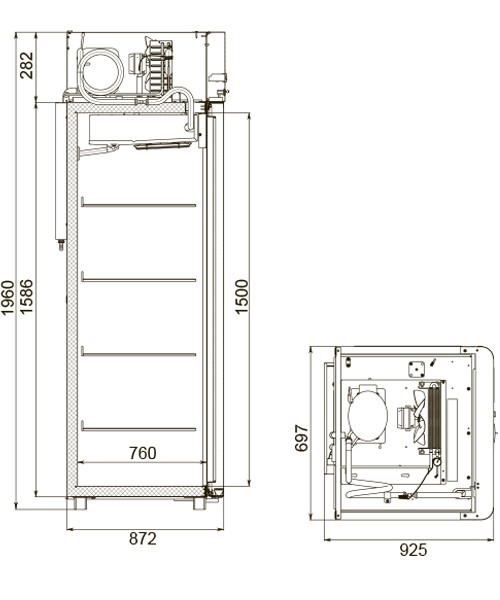Каталог оборудования Холодильное оборудованиеШкафы холодильныеШкафы холодильные универсальные от -5 до +5 °СШкаф холодильный универсальный Polair CV107-Sm Alu Шкаф холодильный универсальный Polair CV107-Sm Alu Код товара: 062-611 Поделиться: WhatsAppTelegram СравнитьДобавить в КПВ избранное 0 129 370 ₽ В корзину 0 шт Под заказСамовывоз сегодня бесплатно Взять в кредит Купить в лизинг Получить консультацию в WhatsApp Описание Характеристики Отзывы 0 Инструкции 4 Шкаф холодильный универсальный Polair CV107-Sm Alu предназначен для демонстрации и надежного хранения продуктов на предприятиях общественного питания и торговли. Цельнозаливной корпус выполнен из стали с полимерным покрытием и оснащен алюминиевыми профилями, что обеспечивает высокую прочность конструкции и долговечность, а также подчеркивает современный премиальный дизайн. Шкаф работает при температуре окружающей среды до 40 °С и влажности воздуха до 80%. Особенности модели: Контрольная панель с быстрым доступом к настройкам, удобным возвратом в предыдущее меню и возможностью полного отключения без отдельной кнопки. Жидкокристаллический дисплей для наглядного отображения параметров. Клапан Шредера для обслуживания холодильной системы. Компенсационный клапан с ПЭНом обогрева, ПЭНы обогрева трубки слива конденсата и дверного проема — предотвращают образование льда и обеспечивают надежную работу. Распашной тип двери с возможностью изменения стороны открывания, что делает установку более гибкой. Полностью интегрированные ручки, удобные и стильные. Эластичные уплотнители с магнитными вставками для максимальной герметизации. Внутренняя подсветка вынесена на нижнюю часть фронтальной панели. Микропереключатель для автоматического отключения вентилятора и включения подсветки при открытии дверей. Регулируемые по высоте ножки для устойчивости на любом полу. Педаль для удобного открывания без рук. Замок для защиты содержимого. Высокая допустимая нагрузка на полку — до 40 кг. Размер полки: GN 2/1 (530×650 мм). Толщина стенки корпуса — 43 мм, что обеспечивает отличную теплоизоляцию. Polair CV107-Sm Alu — это функциональный и надежный холодильный шкаф с современным дизайном, который обеспечивает максимальную сохранность и удобный доступ к продуктам. Отлично подходит для ресторанов, кафе и магазинов, где важны надежность, стиль и энергоэффективность.Изображение товара, представленного на фото, может отличаться от его фактического вида. Показать все Габаритные размеры697×925×1960 ммДиапазон рабочей температурыот -5 до +5 °CДлина697 ммГлубина925 ммВысота1960 ммОбъём700 лРазмер полки530×650 ммКоличество полок4 штКоличество дверей1 штТип оттайкиАвтоматическая Тип охлажденияДинамическое Тип управленияЭлектронное Материал корпусаНержавеющая сталь Тип двериМеталлическая ЗамокЕсть Способ открыванияРаспашные ХладагентR290 Холодильный агрегатВстроенный Расположение агрегатаВерхнее Потребление электроэнергии в сутки4,5 кВтПотребляемая мощность0,4 кВтНапряжение220 ВГабариты в упаковке800×1000×2150 ммВес нетто113 кгВес брутто138 кгБрендPolairВсе шкафы холодильные универсальные от -5 до +5 °С Из нержавейки Оставить отзыв Еще никто не оставил отзыв на этот товар Схема POLAIR CV107-Sm.jpgИнструкция на POLAIR CV107-Sm.pdfДекларация о соответствии.pdfСертификат соответствия.pdf Похожие товары Перейти в каталог В наличии 106 487 ₽ Шкаф холодильный универсальный Сев