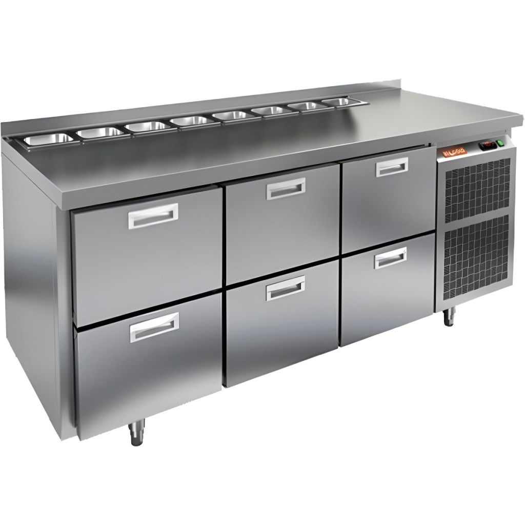 Каталог оборудования Холодильное оборудованиеСтолы охлаждаемыеСтолы холодильные для салатовСтол холодильный для салатов HiCold SL1-222GN (1/3) без крышки Стол холодильный для салатов HiCold SL1-222GN (1/3) без крышки Код товара: 064-845 Поделиться: WhatsAppTelegram СравнитьДобавить в КПВ избранное 0 255 412 ₽ В корзину 0 шт Под заказСамовывоз сегодня бесплатно Взять в кредит Купить в лизинг Получить консультацию в WhatsApp Описание Характеристики Отзывы 0 Инструкции 1 Стол холодильный для салатов HiCold SL1-222GN (1/3) без крышки предназначен для использования на предприятиях общественного питания и торговли. Он объединяет рабочую поверхность и охлаждаемый отсек, что делает его удобным решением для хранения, охлаждения и подготовки ингредиентов при приготовлении салатов, пиццы и других блюд. Такая конструкция позволяет повару работать быстрее и эффективнее, так как все необходимые продукты находятся под рукой. Корпус и столешница выполнены из прочной нержавеющей стали, устойчивой к коррозии и легко поддающейся санитарной обработке. Особенности модели: Электронная панель управления — точная настройка температурного режима. 6 выдвижных ящика — быстрое размещение и замена продуктов. Вместимость салат-бара — до 8 гастроемкостей глубиной до 100 мм. Автоматические доводчики дверей с фиксацией в открытом положении. Легкозаменяемые магнитные уплотнители — надежная герметичность. Открытая агрегатная часть — быстрый доступ для обслуживания. Регулируемые по высоте ножки — устойчивость даже на неровном полу. Толщина столешницы, борта и теплоизоляции — 50 мм, что обеспечивает прочность и энергоэффективность конструкции. HiCold SL1-222GN (1/3) бзе крышки — практичное и удобное решение для профессиональной кухни, обеспечивающее удобную подготовку и хранение ингредиентов.Изображение товара, представленного на фото, может отличаться от его фактического вида. Показать все Габаритные размеры1835×700×850 ммДиапазон рабочей температурыот +2 до +10 °CРасположение агрегатаБоковое Материал столешницыНержавеющая Тип столаС ящиками Объём505 лТип гастроемкостейGN 1/3 Количество ящиков6 штНапряжение220 ВМощность0,46 кВтТип охлажденияДинамическое Тип оттайкиАвтоматическая СтолешницаС бортом Габариты в упаковке2000×850×1000 ммВес нетто120 кгВес брутто140 кгБрендHicold Оставить отзыв Еще никто не оставил отзыв на этот товар Декларация о соответствии.pdf Ранее просмотрено Под заказ 259 191 ₽ Агрегат компрессорный-конденсаторный МХМ БКК ZB-30 Под заказ 119 200 ₽ Витрина кондитерская Carboma KC70 N 1,3-2 Light Паттерн (0108 Темный дуб) хлебная, без стекла Под заказ 187 290 ₽ Горка холодильная Carboma FC20-07 VM 0,7-1 LIGHT фронт Х0 (версия 2.0) (9006-9005) Под заказ 180 090 ₽ Горка холодильная Carboma FC20-07 VM 1,0-2 (версия 2.0) (9006-9005) Под заказ 192 871 ₽ Горка холодильная Carboma FC20-07 VV 0,7-1 STANDARD фронт X1 (версия 2.0) (9006-9005) Под заказ 324 270 ₽ Горка холодильная Carboma FC20-07 VV 1,9-1 STANDARD фронт X1 (версия 2.0) (9006-9005) Под заказ 192 871 ₽ Горка холодильная Carboma FC20-07 VV 0,7-1 STANDARD фронт X1 (версия 2.0) (цвет по схеме)