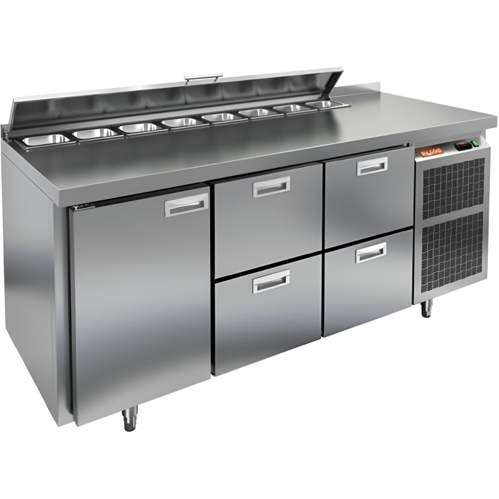 Модель совмещает охлаждаемый объем и рабочую поверхность, что значительно повышает удобство и скорость работы персонала. Корпус и столешница выполнены из прочной и гигиеничной нержавеющей стали, устойчивой к влаге, загрязнениям и механическим повреждениям. Металлическая крышка защищает продукты от загрязнений и сохраняет их свежесть.