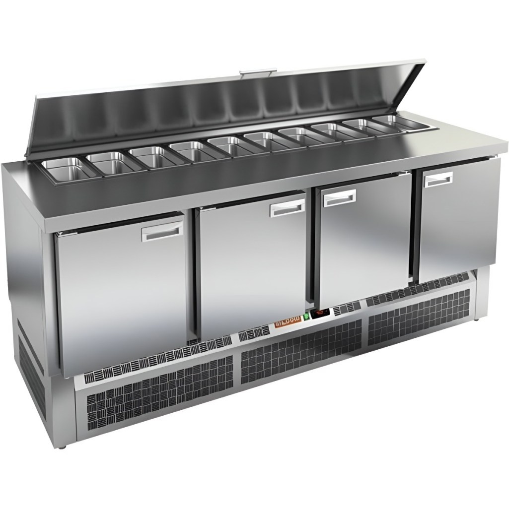 Каталог оборудования Холодильное оборудованиеСтолы охлаждаемыеСтолы холодильные для салатовСтол холодильный для салатов HiCold SLE1-11111GN (1/3) О с крышкой Стол холодильный для салатов HiCold SLE1-11111GN (1/3) О с крышкой Код товара: 064-545 Поделиться: WhatsAppTelegram СравнитьДобавить в КПВ избранное 0 172 162 ₽ В корзину 0 шт Под заказСамовывоз сегодня бесплатно Взять в кредит Купить в лизинг Получить консультацию в WhatsApp Описание Характеристики Отзывы 0 Инструкции 2 Стол холодильный для салатов HiCold SLE1-1111GN (1/3) О с крышкой предназначен для предприятий общественного питания и торговли. Он позволяет хранить и обрабатывать ингредиенты для пиццы, салатов и других блюд, а также охлаждать и кратковременно хранить скоропортящиеся продукты и напитки. Модель совмещает рабочую поверхность и охлаждаемый объем, что обеспечивает удобство работы повара: все необходимые компоненты всегда под рукой. Корпус и столешница выполнены из нержавеющей стали, что гарантирует долговечность и простоту ухода. Особенности: Динамическая система охлаждения — равномерное распределение температуры по всему объему. Автоматическая оттайка — упрощает уход за оборудованием. Электронная панель управления — удобная настройка температуры и режимов работы. 4 вместительные внутренние полки формата GN 1/1 — оптимальное хранение ингредиентов. Автоматические доводчики дверей с фиксатором открытого положения — комфорт и безопасность работы. Легкозаменяемые магнитные уплотнители — простота обслуживания. Открытая агрегатная часть — облегчает доступ для обслуживания. Регулируемые по высоте ножки — адаптация к рабочей поверхности. Размер полки: 530×325 мм (GN 1/1) Максимальная глубина гастроемкостей: 100 мм Столешница без борта и с крышкой: толщина столешницы и теплоизоляции — 50 мм, высота борта — 50 мм HiCold SLE1-1111GN (1/3) О с крышкой — надежный и удобный стол для профессиональной кухни. Он обеспечивает эффективное охлаждение и хранение ингредиентов, а комбинированная рабочая поверхность с холодильным объемом упрощает работу повара, делая процесс приготовления быстрее и удобнее.Изображение товара, представленного на фото, может отличаться от его фактического вида. Показать все Габаритные размеры1970×700×800 ммДиапазон рабочей температурыот +2 до +10 °CРасположение агрегатаНижнее Материал столешницыНержавеющая Тип столаС дверьми Тип двериГлухая Объём505 лКоличество дверей4 штТип гастроемкостейGN 1/3 Размер полки530×325 ммНапряжение220 ВМощность0,46 кВтТип охлажденияДинамический Тип оттайкиАвтоматическая СтолешницаС бортом Вес нетто135 кгВес брутто195 кгБрендHicold Оставить отзыв Еще никто не оставил отзыв на этот товар Паспорт на HICOLD SLE1-1111GN (1/3) О.pdfДекларация о соответствии.pdf Ранее просмотрено Под заказ 124 192 ₽ Стол холодильный для салатов HiCold SLE1-11GN (1/3) О с крышкой