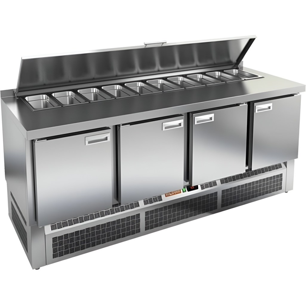 Каталог оборудования Холодильное оборудованиеСтолы охлаждаемыеСтолы холодильные для салатовСтол холодильный для салатов HiCold SLE2-1111SN (1/6) Стол холодильный для салатов HiCold SLE2-1111SN (1/6) Код товара: 061-996 Поделиться: WhatsAppTelegram СравнитьДобавить в КПВ избранное 0 171 351 ₽ В корзину 0 шт Под заказСамовывоз сегодня бесплатно Взять в кредит Купить в лизинг Получить консультацию в WhatsApp Описание Характеристики Отзывы 0 Инструкции 2 Стол холодильный для салатов HiCold SLE2-1111SN (1/6) — это профессиональный салатный стол, предназначенный для использования в кафе, ресторанах, пиццериях и других предприятиях общественного питания. Он совмещает в себе просторную рабочую поверхность и охлаждаемый объем, обеспечивая удобство и эффективность при приготовлении различных блюд — от салатов до пиццы. Благодаря корпусу и столешнице из нержавеющей стали, оборудование устойчиво к коррозии, легко очищается и соответствует санитарным требованиям. Ключевые особенности: Электронная панель управления — обеспечивает точное регулирование температуры и удобство в эксплуатации. 4 вместительные полки формата GN 1/1 — позволяют организовать хранение большого объема продуктов и ингредиентов. Салат-бар вмещает до 11 гастроемкостей — оптимален для широкого ассортимента заготовок. Автоматические доводчики дверей с фиксацией — повышают удобство использования, особенно при загрузке и выгрузке продуктов. Магнитные уплотнители — легко заменяются и обеспечивают плотное прилегание, предотвращая утечку холода. Открытая агрегатная часть — облегчает техническое обслуживание. Регулируемые ножки — позволяют установить стол на любой поверхности, компенсируя неровности пола. Глубина гастроемкостей — до 100 мм, толщина столешницы — 50 мм, высота борта — 50 мм, толщина теплоизоляции — 50 мм — обеспечивают стабильное охлаждение и прочность конструкции. HiCold SLE2-1111SN — это функциональный и вместительный салатный стол, который идеально подходит для профессиональных кухонь с интенсивной загрузкой. Он сочетает в себе надежность, удобство и продуманную конструкцию для максимальной производительности на рабочем месте.Изображение товара, представленного на фото, может отличаться от его фактического вида. Показать все Габаритные размеры1970×600×850 ммДиапазон рабочей температурыот +2 до +10 °CРасположение агрегатаНижнее Материал столешницыНержавеющая Тип столаС дверьми Тип двериГлухая Объём430 лКоличество дверей4 штТип гастроемкостейGN 1/6 Размер полки430х×325 ммНапряжение220 ВМощность0,46 кВтТип охлажденияДинамическое Тип оттайкиАвтоматическая СтолешницаС бортом Вес нетто104 кгВес брутто148 кгБрендHicold Оставить отзыв Еще никто не оставил отзыв на этот товар Паспорт на HICOLD SLE2-1111SN.pdfДекларация о соответствии.pdf Ранее просмотрено Под заказ 386 974 ₽ Льдогенератор Brema GB 1540W HC (гранулы) В наличии 17 027 ₽ Льдогенератор Cooleq ZBC-18 (кубики) Под заказ 110 925 ₽ Шкаф холодильный универсальный Arkto V1.0-SLD