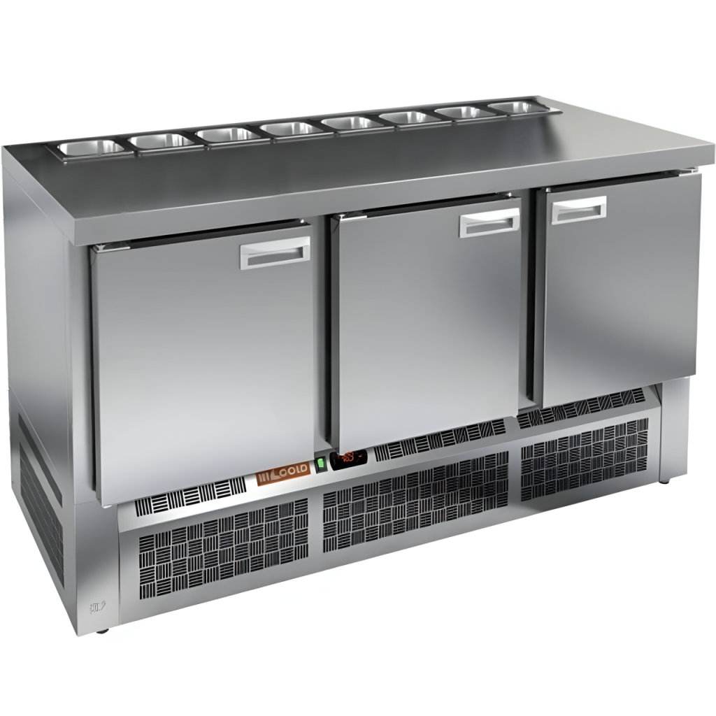 Каталог оборудования Холодильное оборудованиеСтолы охлаждаемыеСтолы холодильные для салатовСтол холодильный для салатов HiCold SLE2-111GN (1/6) О без крышки Стол холодильный для салатов HiCold SLE2-111GN (1/6) О без крышки Код товара: 064-866 Поделиться: WhatsAppTelegram СравнитьДобавить в КПВ избранное 0 144 082 ₽ В корзину 0 шт Под заказСамовывоз сегодня бесплатно Взять в кредит Купить в лизинг Получить консультацию в WhatsApp Описание Характеристики Отзывы 0 Инструкции 2 Стол холодильный для салатов HiCold SLE2-111GN (1/6) О без крышки предназначен для предприятий общественного питания и торговли. Он используется для хранения, охлаждения и обработки ингредиентов, применяемых при приготовлении салатов, пиццы, закусок и других блюд. Модель объединяет удобную рабочую поверхность и охлаждаемый отсек, позволяя повару иметь все необходимое под рукой. Конструкция выполнена из прочной нержавеющей стали, устойчивой к коррозии и легкой в уходе. Особенности модели: Электронная панель управления — точная настройка температуры и контроль за режимами работы. 3 вместительные внутренние полки — рациональное распределение хранения. Салат-бар вмещает 8 гастроемкостей — оптимальная организация ингредиентов. Автоматические доводчики дверей с фиксацией в открытом положении — удобно при загрузке и выгрузке продуктов. Магнитные уплотнители — легко заменяются, обеспечивая герметичность. Открытая агрегатная часть — упрощает техническое обслуживание. Регулируемые по высоте ножки — позволяют установить оборудование на любой поверхности. Глубина гастроемкостей — до 100 мм. Толщина столешницы и теплоизоляции — по 50 мм, что способствует сохранению холода и прочности конструкции. HiCold SLE2-111GN (1/6) О без крышки — это функциональный и надёжный салатный стол, сочетающий в себе удобство работы и эффективное охлаждение. Отличное решение для кухни с интенсивной нагрузкой. Изображение товара, представленного на фото, может отличаться от его фактического вида. Показать все Габаритные размеры1485×700×850 ммДиапазон рабочей температурыот +2 до +10 °CРасположение агрегатаНижнее Материал столешницыНержавеющая Тип столаС дверьми Тип двериГлухая Объём375 лКоличество дверей3 штТип гастроемкостейGN 1/6 Размер полки530×325 ммНапряжение220 ВМощность0,22 кВтТип охлажденияДинамическое Тип оттайкиАвтоматическая СтолешницаБез борта Габариты в упаковке1700×850×1080 ммВес нетто115 кгВес брутто160 кгБрендHicold Оставить отзыв Еще никто не оставил отзыв на этот товар Паспорт на HICOLD SLE2-111GN О.pdfДекларация о соответствии.pdf Ранее просмотрено Под заказ 154 342 ₽ Стол холодильный для салатов HiCold SLE1-12SN (1/3) с крышкой Под заказ 234 262 ₽ Стол холодильный для салатов HiCold SL2-33SN (1/6) с крышкой Под заказ 189 982 ₽ Стол холодильный для салатов HiCold SL2-111GN (1/6) М с крышкой В наличии 129 700 ₽ Витрина кондитерская Carboma K70 VM 1,3-1 Light (версия 2.0) (9005) Под заказ 200 691 ₽ Стол холодильный для салатов HiCold SLE1-121GN (1/3) М с крышкой Под заказ 204 472 ₽ Стол холодильный для салатов HiCold SL2-22GN (1/6) с крышкой Под заказ 228 682 ₽ Стол холодильный для салатов HiCold SL2-122GN (1/6) с крышкой