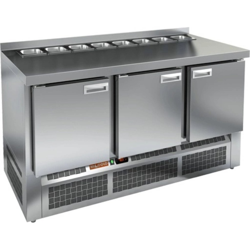 Каталог оборудования Холодильное оборудованиеСтолы охлаждаемыеСтолы холодильные для салатовСтол холодильный для салатов HiCold SLE2-111SN (1/6) без крышки Стол холодильный для салатов HiCold SLE2-111SN (1/6) без крышки Код товара: 064-871 Поделиться: WhatsAppTelegram СравнитьДобавить в КПВ избранное 0 143 632 ₽ В корзину 0 шт Под заказСамовывоз сегодня бесплатно Взять в кредит Купить в лизинг Получить консультацию в WhatsApp Описание Характеристики Отзывы 0 Инструкции 2 Стол холодильный для салатов HiCold SLE2-111SN (1/6) без крышки предназначен для предприятий общественного питания и торговли. Он используется для хранения, охлаждения и обработки ингредиентов, применяемых при приготовлении салатов, пиццы, закусок и других блюд. Модель объединяет удобную рабочую поверхность и охлаждаемый отсек, позволяя повару иметь все необходимое под рукой. Конструкция выполнена из прочной нержавеющей стали, устойчивой к коррозии и легкой в уходе. Особенности модели: Электронная панель управления — точная настройка температуры и контроль за режимами работы. 3 вместительные внутренние полки — рациональное распределение хранения. Салат-бар вмещает 8 гастроемкостей — оптимальная организация ингредиентов. Автоматические доводчики дверей с фиксацией в открытом положении — удобно при загрузке и выгрузке продуктов. Магнитные уплотнители — легко заменяются, обеспечивая герметичность. Открытая агрегатная часть — упрощает техническое обслуживание. Регулируемые по высоте ножки — позволяют установить оборудование на любой поверхности. Глубина гастроемкостей — до 100 мм. Толщина столешницы, борта и теплоизоляции — по 50 мм, что способствует сохранению холода и прочности конструкции. HiCold SLE2-111SN (1/6) без крышки — это функциональный и надёжный салатный стол, сочетающий в себе удобство работы и эффективное охлаждение. Отличное решение для кухни с интенсивной нагрузкой. Изображение товара, представленного на фото, может отличаться от его фактического вида. Показать все Габаритные размеры1485×600×850 ммДиапазон рабочей температурыот +2 до +10 °CРасположение агрегатаНижнее Материал столешницыНержавеющая Тип столаС дверьми Тип двериГлухая Объём320 лКоличество дверей3 штТип гастроемкостейGN 1/6 Размер полки430×325 ммНапряжение220 ВМощность0,22 кВтТип охлажденияДинамическое Тип оттайкиАвтоматическая СтолешницаС бортом Габариты в упаковке1700×750×1080 ммВес нетто88 кгВес брутто148 кгБрендHicold Оставить отзыв Еще никто не оставил отзыв на этот товар Паспорт на HICOLD SLE2-111SN.pdfДекларация о соответствии.pdf Ранее просмотрено Под заказ 118 162 ₽ Стол холодильный для салатов HiCold SLE3-11GN без крышки Под заказ 153 981 ₽ Стол холодильный для салатов HiCold SLE2-12SN (1/6) с крышкой Под заказ 154 432 ₽ Стол холодильный для салатов HiCold SLE2-12GN (1/6) с крышкой Под заказ 182 692 ₽ Стол холодильный для салатов HiCold SLE2-22GN (1/6) без крышки Под заказ 90 118 ₽ Дверь холодильная распашная двустворчатая СТ-РДД-2200*2200/80 Под заказ 146 332 ₽ Стол холодильный для салатов HiCold SLE2-11GN (1/6) М с крышкой Под заказ 121 492 ₽ Стол холодильный для салатов HiCold SLE2-11GN (1/6) без крышки