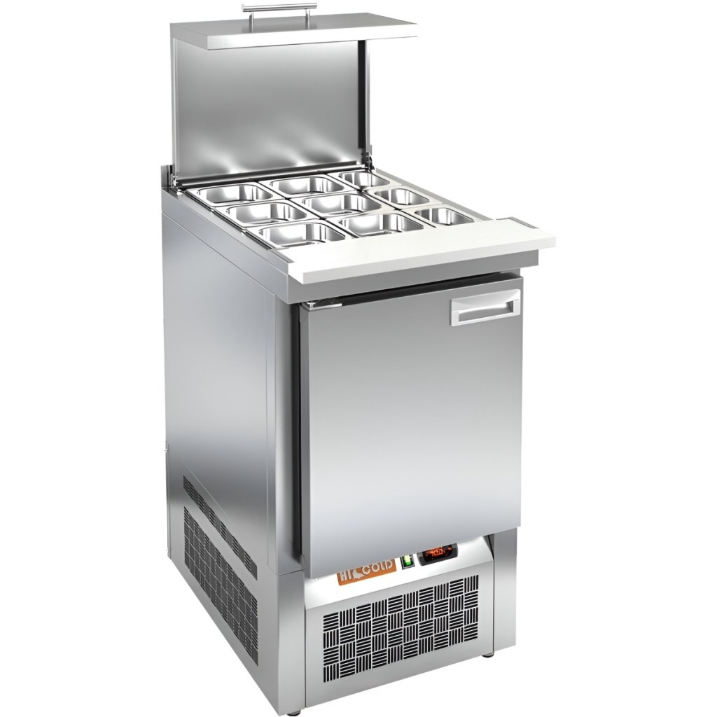 Стол холодильный для салатов HiCold SLE3-1GN полипропилен, с крышкой предназначен для охлаждения и кратковременного хранения ингредиентов, используемых при приготовлении салатов, закусок, сэндвичей и других блюд. Он широко применяется на предприятиях общественного питания и торговли.