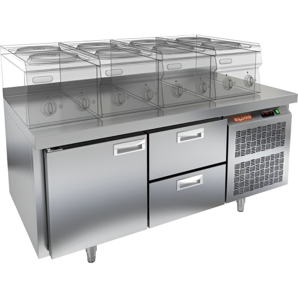 Каталог оборудования Холодильное оборудованиеСтолы охлаждаемыеСтолы холодильные под тепловое оборудованиеСтол охлаждаемый HiCold GN 12/TN LT под тепловое оборудование Стол охлаждаемый HiCold GN 12/TN LT под тепловое оборудование Код товара: 065-466 Поделиться: WhatsAppTelegram СравнитьДобавить в КПВ избранное 0 142 012 ₽ В корзину 0 шт Под заказСамовывоз сегодня бесплатно Взять в кредит Купить в лизинг Получить консультацию в WhatsApp Описание Характеристики Отзывы 0 Инструкции 2 Стол охлаждаемый HiCold GN 12/TN LT под тепловое оборудование предназначен для обработки ингредиентов и временного хранения скоропортящихся продуктов и напитков на предприятиях общественного питания и торговли. Устройство совмещает функции рабочей поверхности и холодильной камеры. Столешница рассчитана на установку теплового оборудования: под рабочей поверхностью встроен ДСП-лист, который укрепляет конструкцию и препятствует проникновению тепла внутрь. Такое решение обеспечивает дополнительную жесткость, позволяет рационально использовать рабочее пространство и повышает эффективность работы на кухне. Особенности: 1 распашная дверь и 2 выдвижные секции обеспечивают удобный доступ к хранимым продуктам. гастроемкостей и обеспечивают удобство размещения продуктов. Автоматические доводчики дверей с фиксатором открытого положения повышают эргономику и способствуют сохранению холода. Легкозаменяемые магнитные уплотнители обеспечивают плотное прилегание дверей и лёгкость в обслуживании. Открытая агрегатная часть упрощает доступ к компрессору при техническом обслуживании. Регулируемые по высоте ножки позволяют установить стол на неровной поверхности. Толщина столешницы — 50 мм обеспечивает прочность рабочей поверхности. Высота борта — 50 мм предотвращает падение продуктов и инвентаря. Толщина теплоизоляции — 50 мм способствует энергоэффективности и стабильному температурному режиму. HiCold GN 12/TN LT — это надёжное и удобное оборудование, сочетающее охлаждение и рабочее пространство. Благодаря продуманной конструкции и совместимости с гастроемкостями GN 1/1, стол станет практичным решением для кухни любого профессионального уровня.Изображение товара, представленного на фото, может отличаться от его фактического вида. Показать все Габаритные размеры1390×700×675 ммДиапазон рабочей температурыот -2 до +10 °CМатериал столешницыНержавеющая Расположение агрегатаБоковое Объём255 лТип столаС дверьми и ящиками Тип двериГлухая Количество дверей1 штКоличество ящиков2 штРазмер полки530×325 ммНапряжение220 ВМощность0,22 кВтТип охлажденияДинамический Тип оттайкиАвтоматическая СтолешницаС бортом Габариты в упаковке1550×850×850 ммВес нетто145 кгВес брутто165 кгБрендHicold Оставить отзыв Еще никто не оставил отзыв на этот товар Паспорт на HICOLD GN 12TN LT.pdfДекларация о соответствии.pdf Похожие товары Перейти в каталог В наличии 77 661 ₽ Стол холодильный среднетемпературный HiCold GN 11/TN W Под заказ 125 670 ₽ Стол холодильный среднетемпературный Abat СХС-70-01 с бортом (дверь, дверь) С этим товаром покупают В наличии 201 690 ₽ Шкаф морозильный Полюс Carboma F1400 В наличии 195 030 ₽ Плита индукционная Аbat КИП-47Н Ранее просмотрено В наличии 276 420 ₽ Горка холодильная МХМ Купец ВХСп-2,5 new с дверьми стекло (боковины с зеркалом) Под заказ 129 228 ₽ Стол холодильный среднетемпературный Abat СХС-70Н-01 столешница 202 без борта (дверь, ящик 1) Под заказ 1