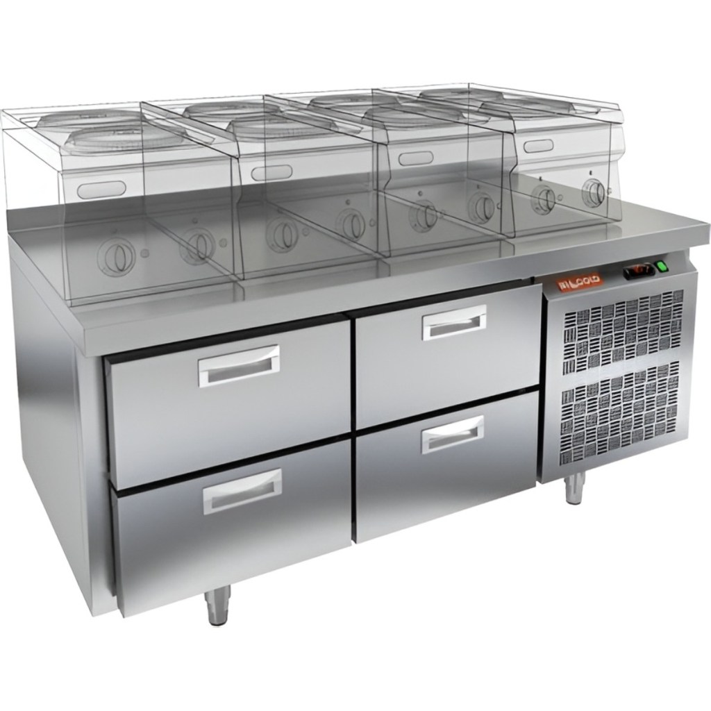 Каталог оборудования Холодильное оборудованиеСтолы охлаждаемыеСтолы холодильные под тепловое оборудованиеСтол охлаждаемый HiCold GN 22/TN LT SH под тепловое оборудование Стол охлаждаемый HiCold GN 22/TN LT SH под тепловое оборудование Код товара: 065-423 Поделиться: WhatsAppTelegram СравнитьДобавить в КПВ избранное 0 170 812 ₽ В корзину 0 шт Под заказСамовывоз сегодня бесплатно Взять в кредит Купить в лизинг Получить консультацию в WhatsApp Описание Характеристики Отзывы 0 Инструкции 2 Стол охлаждаемый HiCold GN 22/TN LT SH под тепловое оборудование предназначен для обработки ингредиентов и временного хранения скоропортящихся продуктов и напитков на предприятиях общественного питания и торговли. Устройство совмещает функции рабочей поверхности и холодильной камеры. Столешница рассчитана на установку теплового оборудования: под рабочей поверхностью встроен ДСП-лист, который укрепляет конструкцию и препятствует проникновению тепла внутрь. Такое решение обеспечивает дополнительную жесткость, позволяет рационально использовать рабочее пространство и повышает эффективность работы на кухне. Особенности: 4 выдвижных ящика — быстрое и удобное хранение ингредиентов. Автоматические доводчики дверей с фиксатором открытого положения повышают эргономику и способствуют сохранению холода. Легкозаменяемые магнитные уплотнители обеспечивают плотное прилегание дверей и лёгкость в обслуживании. Открытая агрегатная часть упрощает доступ к компрессору при техническом обслуживании. Конструкция на низких ножках обеспечивает стабильность и удобство эксплуатации. Толщина столешницы — 50 мм обеспечивает прочность рабочей поверхности. Высота борта — 50 мм предотвращает падение продуктов и инвентаря. Толщина теплоизоляции — 50 мм способствует энергоэффективности и стабильному температурному режиму. HiCold GN 22/TN LT SH — это надёжный и практичный холодильный стол с выдвижными ящиками, идеально подходящий для профессиональных кухонь. Его конструкция создана для обеспечения удобства, гигиеничности и эффективности в условиях интенсивной эксплуатации.Изображение товара, представленного на фото, может отличаться от его фактического вида. Показать все Габаритные размеры1390×700×610 ммДиапазон рабочей температурыот -2 до +10 °CМатериал столешницыНержавеющая Расположение агрегатаБоковое Объём255 лТип столаС ящиками Количество ящиков4 штНапряжение220 ВМощность0,22 кВтТип охлажденияДинамический Тип оттайкиАвтоматическая СтолешницаС бортом Габариты в упаковке1550×850×850 ммВес нетто98 кгВес брутто109 кгБрендHicold Оставить отзыв Еще никто не оставил отзыв на этот товар Паспорт на HICOLD GN 22TN LT SH.pdfДекларация о соответствии.pdf Похожие товары Перейти в каталог В наличии 77 661 ₽ Стол холодильный среднетемпературный HiCold GN 11/TN W Под заказ 125 670 ₽ Стол холодильный среднетемпературный Abat СХС-70-01 с бортом (дверь, дверь) С этим товаром покупают В наличии 201 690 ₽ Шкаф морозильный Полюс Carboma F1400 В наличии 195 030 ₽ Плита индукционная Аbat КИП-47Н Ранее просмотрено Под заказ 187 607 ₽ Компрессорно-конденсаторный блок Север BGS 330 S Под заказ 236 742 ₽ Компрессорно-конденсаторный блок Intercold CCB225 QL3-134A Под заказ 287 164 ₽ Компрессорно-конденсаторный блок Север MGSF 525 S