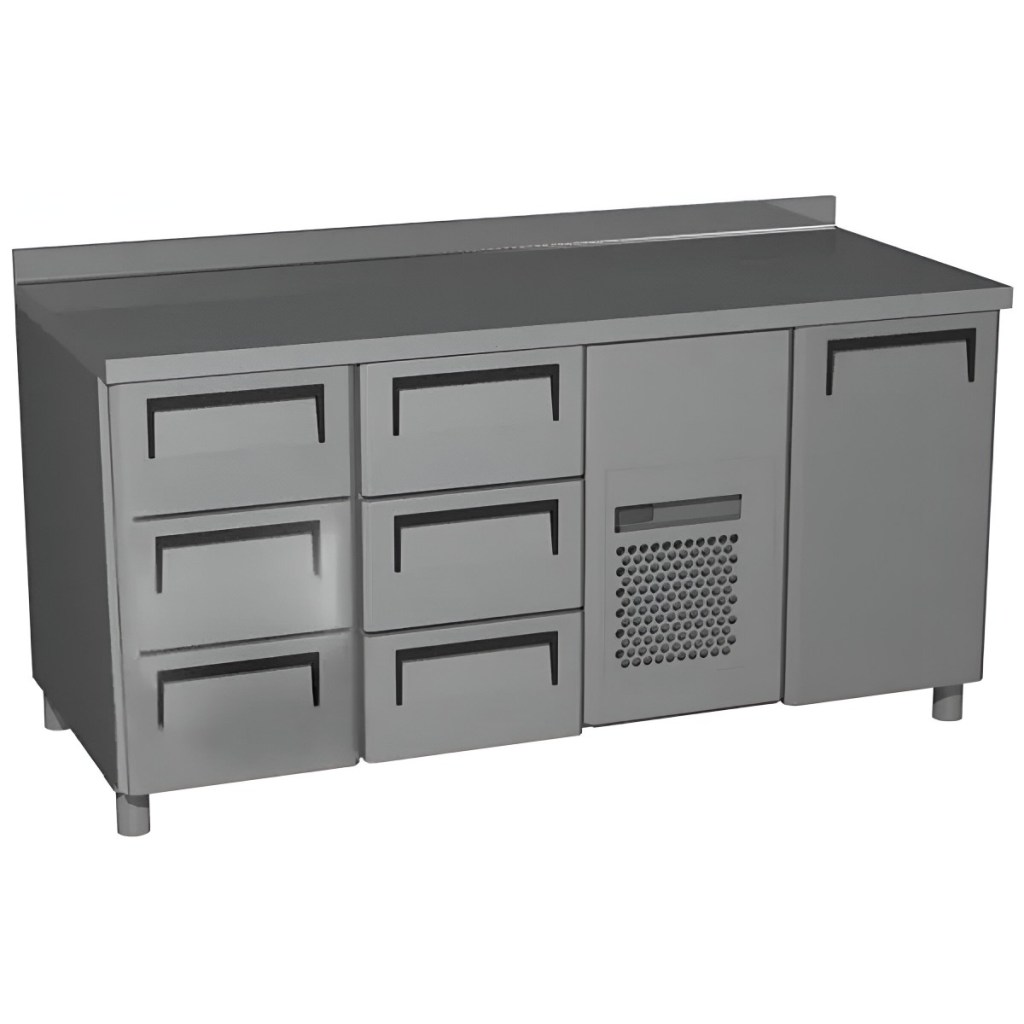 Стол холодильный среднетемпературный Carboma T70 M3-1 (3GN/NT Carboma) с бортом (0430-2 корпус нерж 1 дверь, 6 ящ) — профессиональное оборудование для предприятий общественного питания и торговли. Предназначен для раскатки теста, подготовки ингредиентов, охлаждения и кратковременного хранения скоропортящихся продуктов и напитков. Модель оснащена 1 дверцей и 6 выдвижными ящиками, а ножки регулируются по высоте от 90 до 110 мм.