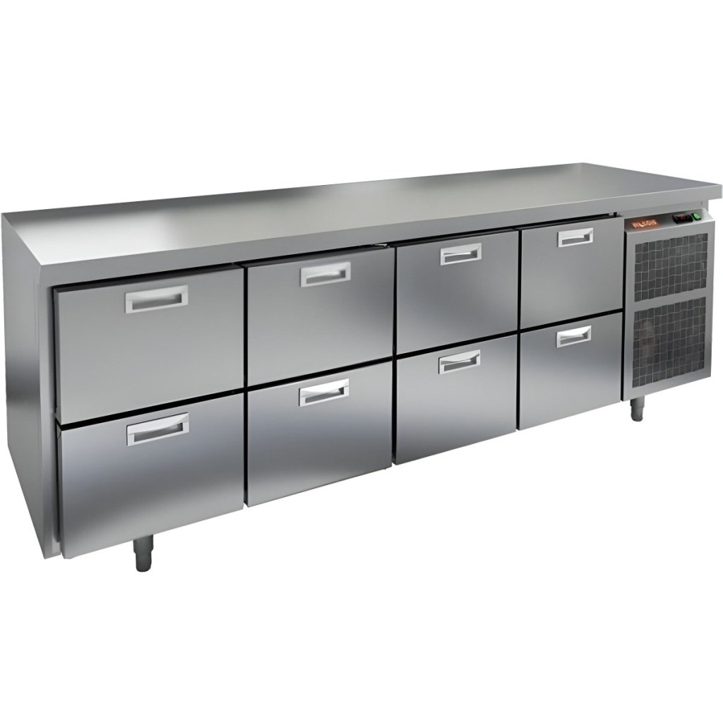 Каталог оборудования Холодильное оборудованиеСтолы охлаждаемыеСтолы холодильные среднетемпературныеСтол холодильный среднетемпературный HiCold GN 2222/TN О М Стол холодильный среднетемпературный HiCold GN 2222/TN О М Код товара: 065-427 Поделиться: WhatsAppTelegram СравнитьДобавить в КПВ избранное 0 312 291 ₽ В корзину 0 шт Под заказСамовывоз сегодня бесплатно Взять в кредит Купить в лизинг Получить консультацию в WhatsApp Описание Характеристики Отзывы 0 Инструкции 2 Стол холодильный среднетемпературный HiCold GN 2222/TN О М — это профессиональное оборудование, предназначенное для кратковременного хранения скоропортящихся продуктов и напитков, а также удобной подготовки ингредиентов на предприятиях общественного питания и торговли. Модель сочетает функциональность, надежность и эргономичный дизайн. Ключевые особенности: 8 выдвижных ящиков обеспечивают удобный доступ к продуктам и рациональную организацию пространства. Электронная панель управления позволяет просто и точно регулировать температуру. Автоматические доводчики обеспечивают мягкое и плотное закрывание ящиков. Легкозаменяемые магнитные уплотнители гарантируют надежную герметичность. Колёса (2 со стопором, 2 без стопора) — обеспечивают мобильность и удобство размещения стола на кухне. Корпус и столешница из нержавеющей стали обеспечивают долговечность, устойчивость к коррозии и простоту в уходе. Столешница без борта, толщина 50 мм — увеличенная рабочая площадь, устойчивая к нагрузкам и механическому воздействию. Толщина теплоизоляции — 50 мм способствует энергоэффективности и стабильному температурному режиму. Рабочий температурный режим сохраняется при температуре окружающей среды от +12 до +37 °C. HiCold GN 2222/TN О М — это многофункциональный холодильный стол, идеально подходящий для профессиональной кухни. Конструкция позволяет удобно распределять ингредиенты, а эргономичные выдвижные модули обеспечивают быстрый доступ к продуктам. Высокое качество материалов, надежные комплектующие и простота эксплуатации делают этот стол незаменимым помощником в условиях интенсивной ежедневной работы.Изображение товара, представленного на фото, может отличаться от его фактического вида. Показать все Габаритные размеры2280×700×850 ммДиапазон рабочей температурыот -2 до +10 °CРасположение агрегатаБоковое Материал столешницыНержавеющая Тип столаС ящиками Объём660 лКоличество ящиков8 штНапряжение220 ВМощность0,48 кВтТип охлажденияДинамический Тип оттайкиАвтоматическая СтолешницаБез борта Габариты в упаковке2420×850×1000 ммВес нетто150 кгВес брутто190 кгБрендHicoldВсе холодильные столы HicoldВсе нержавеющие холодильные столы Все холодильные столы без борта Оставить отзыв Еще никто не оставил отзыв на этот товар Паспорт на HICOLD GN 2222/TN О М.pdfДекларация о соответствии.pdf Похожие товары Перейти в каталог Под заказ 148 851 ₽ Стол холодильный среднетемпературный HiCold SN 1111/TN W В наличии 119 067 ₽ Стол холодильный среднетемпературный Polair TM4GN-GС С этим товаром покупают В наличии 181 658 ₽ Шкаф холодильный универсальный Polair CV 114-G В наличии 9 838 ₽ Индукционная плита HURAKAN HKN-ICW35ML WOK Ранее просмотрено Под заказ 279 891 ₽ Стол холодильный среднетемпературный HiCold GNE 2222/TN О Под заказ 197 812 ₽ Стол холодильный среднетемпературный HiCold GNE 122/TN З Под заказ 140 391 ₽ Стол холодильный среднетемпературный HiCold GNE 12/TN З Под заказ 109 791 ₽ Стол холодильный сре