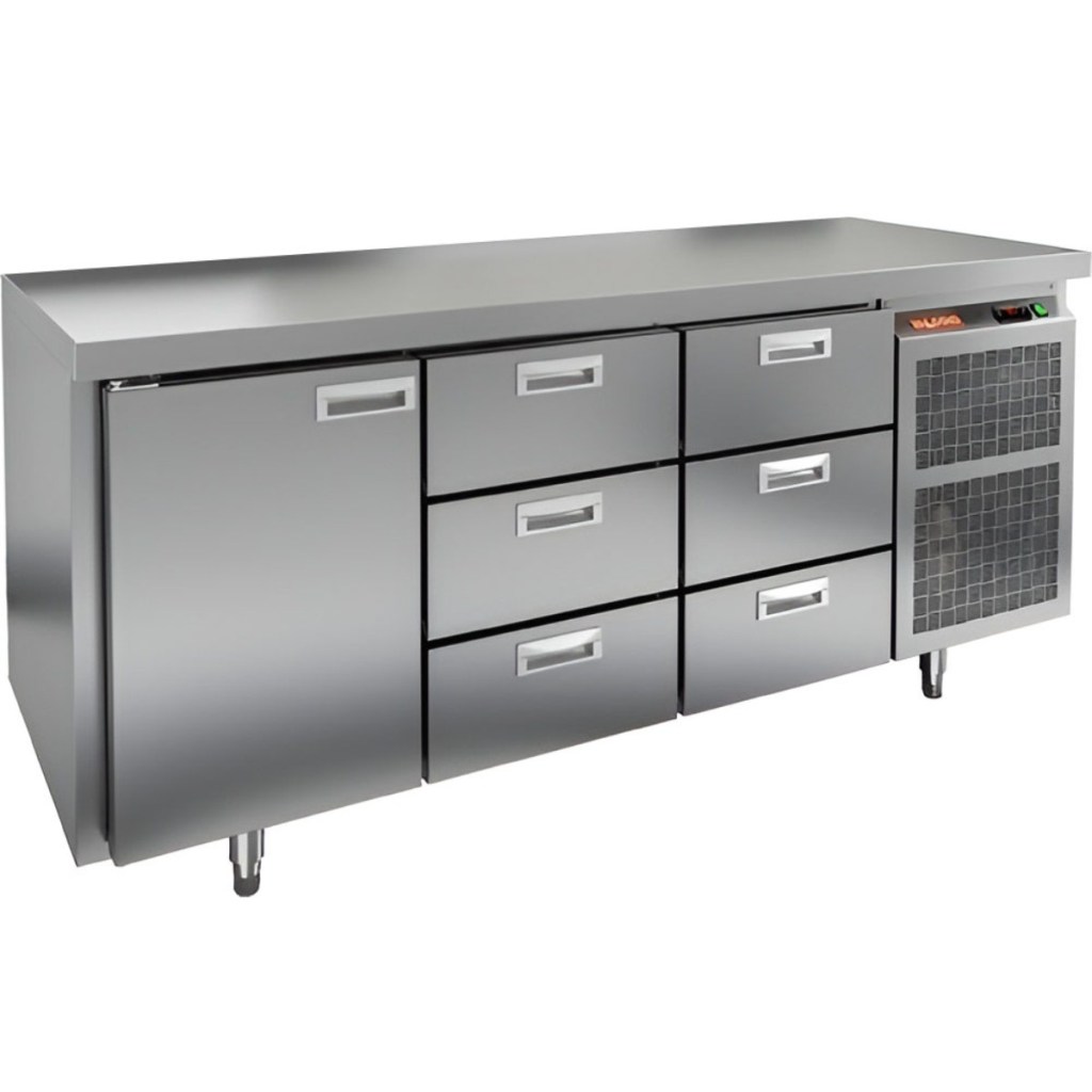 Каталог оборудования Холодильное оборудованиеСтолы охлаждаемыеСтолы морозильные низкотемпературныеСтол морозильный HiCold GN 133/BT O Стол морозильный HiCold GN 133/BT O Код товара: 065-067 Поделиться: WhatsAppTelegram СравнитьДобавить в КПВ избранное 0 266 752 ₽ В корзину 0 шт Под заказСамовывоз сегодня бесплатно Взять в кредит Купить в лизинг Получить консультацию в WhatsApp Описание Характеристики Отзывы 0 Инструкции 2 Стол морозильный HiCold GN133/BT О сочетает в себе удобную рабочую поверхность и вместительную морозильную камеру. Верхняя часть используется для раскатки теста и подготовки ингредиентов, а внутренняя камера предназначена для заморозки и хранения продуктов и полуфабрикатов. Стол оснащен одной глухой дверяью и шестью выдвижными ящиками, что обеспечивает удобный доступ к продуктам и рациональное использование внутреннего пространства. Оборудование идеально подходит для предприятий общественного питания. Особенности: Совместимость с GN-стандартом — полки, направляющие и стойки полностью интегрируются с профессиональным кухонным оборудованием. Прочный цельнозаливной корпус из нержавеющей стали с 50 мм изоляцией обеспечивает высокую герметичность и жесткость конструкции. Столешница без борта для удобной работы с крупными и длинными заготовками. Электронный блок управления с повышенной надежностью и несколькими режимами оттаивания. Вентилятор увеличенной мощности и принудительная вентиляция по всему объему камеры для равномерного и быстрого охлаждения. Интеллектуальная система размораживания и термическое выпаривание конденсата снижают затраты на обслуживание. Экономичный компрессор нового поколения снижает энергопотребление. Облегченный доступ к агрегату упрощает сервисное обслуживание. Двери с доводчиками и ПЭН предотвращают примерзание и обеспечивают плотное закрытие. Регулируемые по высоте ножки для устойчивости на разных поверхностях. Максимальная нагрузка на полку — 50 кг. Высота борта рабочей поверхности — 50 мм. Температура окружающей среды: 12–32 °C. HiCold GN133/BT О — это надежный и функциональный морозильный стол, обеспечивающий удобство работы и эффективное хранение продуктов. Он идеально подходит для интенсивной эксплуатации на профессиональных кухнях ресторанов, кафе и предприятий общественного питания.Изображение товара, представленного на фото, может отличаться от его фактического вида. Показать все Габаритные размеры1835×700×850 ммДиапазон рабочей температурыот -18 до -10 °CРасположение агрегатаБоковое Материал столешницыНержавеющая Тип столаС дверьми и ящиками Тип двериГлухая Объём505 лКоличество дверей1 штКоличество полок1 штКоличество ящиков6 штНапряжение220 ВМощность0,6 кВтТип охлажденияДинамический Тип оттайкиАвтоматическая СтолешницаБзе борта Габариты в упаковке200×845×995 ммВес нетто128 кгВес брутто148 кгБрендHicoldВсе морозильные столы HicoldВсе морозильные столы без бортаВсе морозильные столы с бортом Оставить отзыв Еще никто не оставил отзыв на этот товар Паспорт на HICOLD GN133/BT О.pdfДекларация о соответствии.pdf Похожие товары Перейти в каталог Под заказ 169 732 ₽ Стол морозильный Abat СХН-70-02 без борта (дверь, дверь, дверь) Под заказ 156 861 ₽ Стол морозильный HiCold GN 111/BT W Ранее просмотрено Под заказ 100 106 ₽ Холодильная витрина Таир ВХСн-2,0 Cube Под заказ 246 862 ₽ Стол морозильный HiCold SNE 222/BT О Под заказ 141 292 ₽ Стол морозильный HiCold