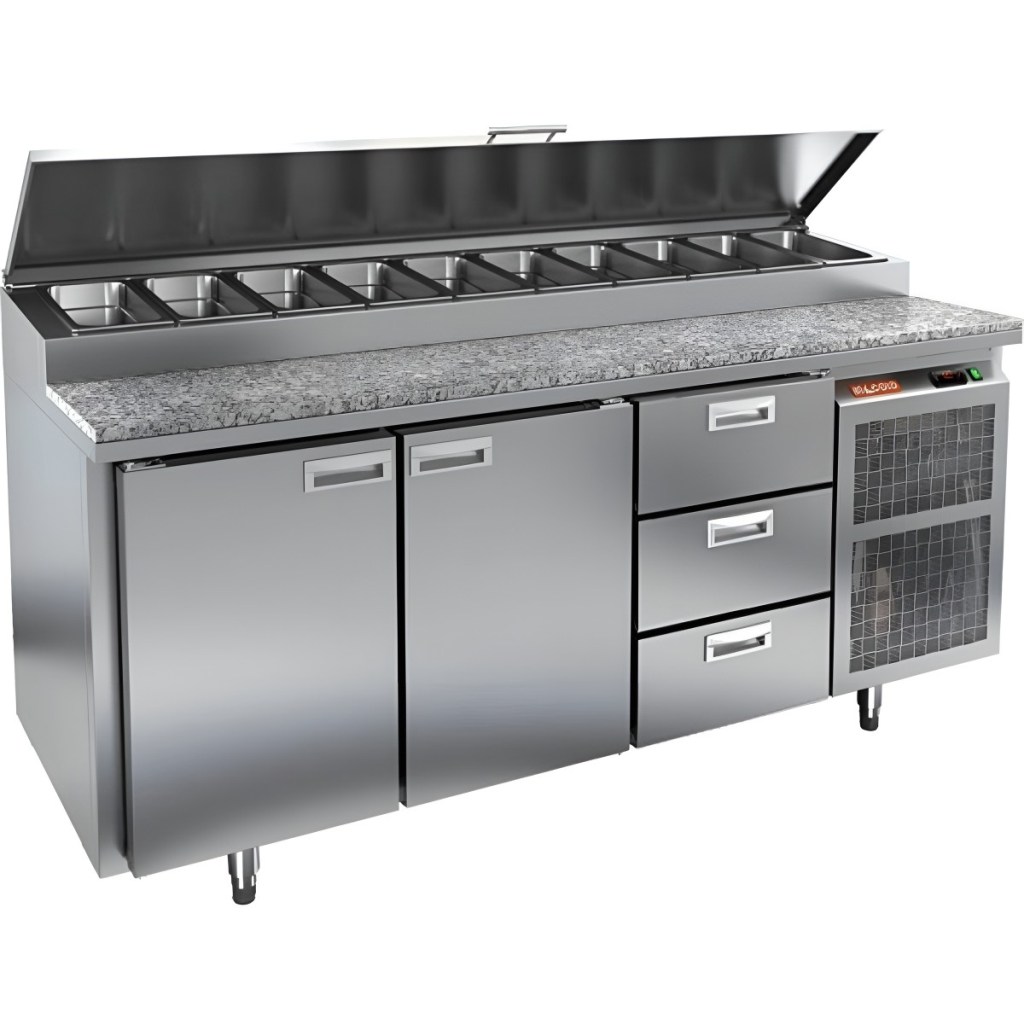 Каталог оборудования Холодильное оборудованиеСтолы охлаждаемыеСтолы холодильные для пиццыСтол холодильный для пиццы HiCold PZ1-113GN (1/3H) камень Стол холодильный для пиццы HiCold PZ1-113GN (1/3H) камень Код товара: 064-693 Поделиться: WhatsAppTelegram СравнитьДобавить в КПВ избранное 0 292 762 ₽ В корзину 0 шт Под заказСамовывоз сегодня бесплатно Взять в кредит Купить в лизинг Получить консультацию в WhatsApp Описание Характеристики Отзывы 0 Инструкции 2 Стол холодильный для пиццы HiCold PZ1-113GN (1/3H) камень — профессиональное оборудование для ресторанов, кафе и предприятий торговли. Он совмещает рабочую поверхность для раскатки теста и подготовки ингредиентов с охлаждаемым блоком для кратковременного хранения продуктов и напитков. Каменная столешница устойчива к повреждениям, не впитывает запахи и легко очищается. Корпус выполнен из нержавеющей стали, обеспечивая долговечность и гигиеничность. Основные особенности: Каменная столешница — прочная, устойчивая к повреждениям и легко моется Динамическая система охлаждения — равномерное распределение холода Автоматическая оттайка — поддержка стабильной работы без наледи Электронная панель управления — точная настройка температуры и режимов 2 вместительные полки формата GN 1/1 3 выдвижных ящика для хранения дополнительных ингредиентов Автоматические доводчики дверей с фиксатором открытого положения — удобство загрузки и выгрузки Легкозаменяемые магнитные уплотнители — поддержание герметичности Открытая агрегатная часть — облегчённый доступ к техническим элементам Регулируемые по высоте ножки — установка по уровню Максимальная глубина гастроёмкостей: 150 мм (крайняя правая — 100 мм) Глубина рабочей поверхности: 324 мм Толщина столешницы и теплоизоляции: 50 мм Вместимость салат-бара: до 10 гастроёмкостей Стол холодильный HiCold PZ1-113GN (1/3H) камень — надёжный и функциональный стол для пиццы и салатов. Каменная рабочая поверхность, охлаждаемый блок, полки и ящики для хранения делают его удобным для интенсивной работы на профессиональной кухне.Изображение товара, представленного на фото, может отличаться от его фактического вида. Показать все Габаритные размеры1835×700×1000 ммДиапазон рабочей температурыот +2 до +10 °CРасположение агрегатаБоковое Материал столешницыГранитная Тип столаС дверьми и ящиками Тип двериГлухая Объём505 лТип гастроемкостейGN 1/3 Количество дверей2 штКоличество ящиков3 штРазмер полки530×325 ммНапряжение220 ВМощность0,5 кВтТип охлажденияДинамическое Тип оттайкиАвтоматическая Габариты в упаковке2000×850×1140 ммВес нетто172 кгВес брутто200 кгБрендHicoldВсе холодильные столы для пиццы Hicold Оставить отзыв Еще никто не оставил отзыв на этот товар Паспорт на HICOLD PZ1-113GN.pdfДекларация о соответствии.pdf Ранее просмотрено Под заказ 270 710 ₽ Прилавок-витрина холодильный Abat Hot-line ПВВ(Н)-70Х-С-01-НШ