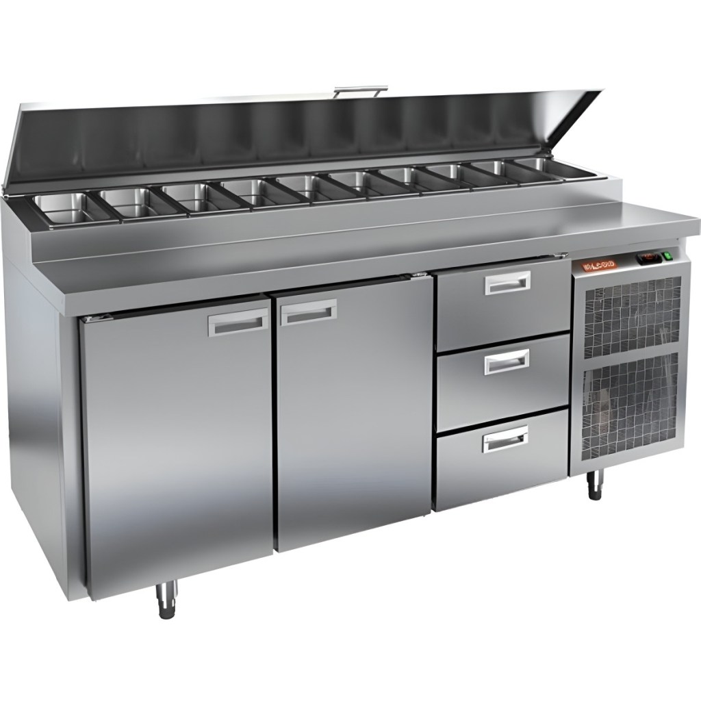 Каталог оборудования Холодильное оборудованиеСтолы охлаждаемыеСтолы холодильные для пиццыСтол холодильный для пиццы HiCold PZ1-113GN (1/3H) Стол холодильный для пиццы HiCold PZ1-113GN (1/3H) Код товара: 064-692 Поделиться: WhatsAppTelegram СравнитьДобавить в КПВ избранное 0 260 272 ₽ В корзину 0 шт Под заказСамовывоз сегодня бесплатно Взять в кредит Купить в лизинг Получить консультацию в WhatsApp Описание Характеристики Отзывы 0 Инструкции 2 Стол холодильный для пиццы HiCold PZ1-113GN (1/3H) — профессиональное оборудование для ресторанов, кафе и предприятий торговли. Он совмещает рабочую поверхность для раскатки теста и подготовки ингредиентов с охлаждаемым блоком для кратковременного хранения продуктов и напитков. Корпус и столешница выполнены из нержавеющей стали, что гарантирует долговечность и лёгкость ухода. Основные особенности: Динамическая система охлаждения — равномерное распределение холода Автоматическая оттайка — поддержка стабильной работы без наледи Электронная панель управления — точная настройка температуры и режимов 2 вместительные полки формата GN 1/1 3 выдвижных ящика для хранения дополнительных ингредиентов Автоматические доводчики дверей с фиксатором открытого положения — удобство загрузки и выгрузки Легкозаменяемые магнитные уплотнители — поддержание герметичности Открытая агрегатная часть — облегчённый доступ к техническим элементам Регулируемые по высоте ножки — установка по уровню Максимальная глубина гастроёмкостей: 150 мм (крайняя правая — 100 мм) Глубина рабочей поверхности: 324 мм Толщина столешницы и теплоизоляции: 50 мм Вместимость салат-бара: до 10 гастроёмкостей Стол холодильный HiCold PZ1-113GN (1/3H) — функциональный и удобный стол для пиццы и салатов, совмещающий рабочую поверхность, охлаждаемый блок, полки и ящики для хранения. Разная глубина гастроёмкостей и продуманная организация рабочего пространства делают его оптимальным решением для профессиональной кухни.Изображение товара, представленного на фото, может отличаться от его фактического вида. Показать все Габаритные размеры1835×700×1000 ммДиапазон рабочей температурыот +2 до +10 °CРасположение агрегатаБоковое Материал столешницыНержавеющая Тип столаС дверьми и ящиками Тип двериГлухая Объём505 лТип гастроемкостейGN 1/3 Количество дверей2 штКоличество ящиков3 штРазмер полки530×325 ммНапряжение220 ВМощность0,5 кВтТип охлажденияДинамическое Тип оттайкиАвтоматическая Габариты в упаковке2000×850×1140 ммВес нетто172 кгВес брутто200 кгБрендHicoldВсе холодильные столы для пиццы HicoldВсе нержавеющие холодильные столы для пиццы Оставить отзыв Еще никто не оставил отзыв на этот товар Паспорт на HICOLD PZ1-113GN.pdfДекларация о соответствии.pdf Ранее просмотрено Под заказ 233 272 ₽ Стол холодильный для пиццы HiCold PZE2-111/GN М камень Под заказ 373 042 ₽ Стол холодильный для пиццы HiCold PZ1-2222GN (1/3H) Под заказ 191 782 ₽ Стол холодильный для пиццы HiCold PZE1-111GN (1/3) З Под заказ 297 352 ₽ Стол холодильный для пиццы HiCold PZ3-112/GN камень Под заказ 268 552 ₽ Стол холодильный для пиццы HiCold PZ3-13/GN камень Под заказ 263 692 ₽ Стол холодильный для пиццы HiCold PZ3-13/SN камень