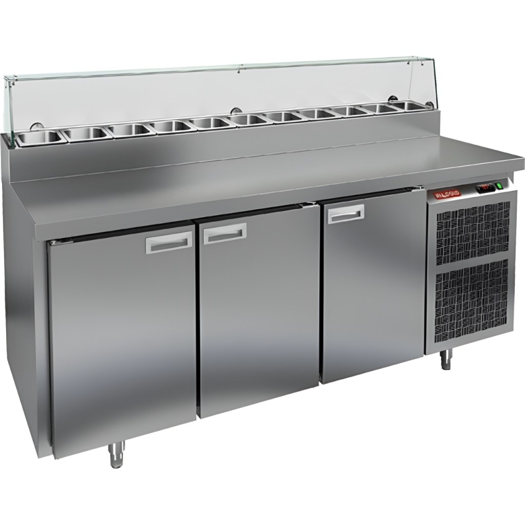 Стол холодильный для пиццы HiCold PZ2-111GN (1/6) стекло предназначен для использования на предприятиях общественного питания и торговли. Он совмещает рабочую поверхность для раскатки теста и подготовки ингредиентов с охлаждаемым блоком для кратковременного хранения скоропортящихся продуктов и напитков. Стеклянный купол защищает ингредиенты от внешних воздействий и обеспечивает их наглядную демонстрацию, что удобно для использования в салат-барах.