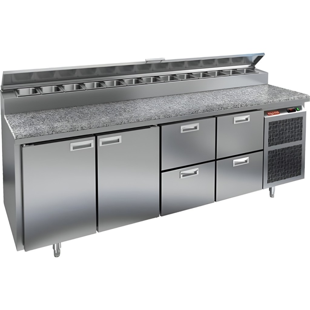 Каталог оборудования Холодильное оборудованиеСтолы охлаждаемыеСтолы холодильные для пиццыСтол холодильный для пиццы HiCold PZ2-1122GN (1/6) камень Стол холодильный для пиццы HiCold PZ2-1122GN (1/6) камень Код товара: 064-750 Поделиться: WhatsAppTelegram СравнитьДобавить в КПВ избранное 0 351 262 ₽ В корзину 0 шт Под заказСамовывоз сегодня бесплатно Взять в кредит Купить в лизинг Получить консультацию в WhatsApp Описание Характеристики Отзывы 0 Стол холодильный для пиццы HiCold PZ2-1122GN (1/6) камень предназначен для кухонь и предприятий общественного питания. Он используется для раскатки теста, подготовки ингредиентов для пиццы, салатов и других блюд, а также для охлаждения и кратковременного хранения скоропортящихся продуктов. Модель совмещает гранитную рабочую поверхность и охлаждаемый отсек с 2 дверями и 4 ящиками, обеспечивая удобный доступ к ингредиентам и эффективное хранение. Особенности: Динамическая система охлаждения для равномерного поддержания температуры Автоматическая оттайка для удобного обслуживания Электронная панель управления для точной настройки параметров Вместительная внутренняя полка формата GN 1/1 (размер 530×325 мм) 2 двери и 4 вместительных ящика для хранения ингредиентов Автоматические доводчики дверей с фиксатором открытого положения Легкозаменяемые магнитные уплотнители для герметичности Открытая агрегатная часть для легкого доступа к компонентам Регулируемые по высоте ножки для устойчивости Гранитная рабочая поверхность глубиной 486 мм и толщиной 50 мм — устойчива к повреждениям, высоким температурам и царапинам Толщина теплоизоляции: 50 мм Максимальная глубина гастроемкостей: 100 мм Вместимость салат-бара: 13 гастроемкости Стол холодильный HiCold PZ2-1122GN (1/6) камень — это надёжный и функциональный стол для пиццы. Он сочетает рабочую поверхность и охлаждаемый отсек, облегчает хранение и подготовку ингредиентов, повышает удобство работы повара и соответствует стандартам профессиональной кухни.Изображение товара, представленного на фото, может отличаться от его фактического вида. Показать все Габаритные размеры2280×700×1000 ммДиапазон рабочей температурыот +2 до +10 °CРасположение агрегатаБоковое Материал столешницыГранитная Тип столаС дверьми и ящиками Тип двериГлухая Объём570 лТип гастроемкостейGN 1/6 Количество дверей2 штКоличество ящиков4 штРазмер полки530×325 ммНапряжение220 ВМощность0,5 кВтТип охлажденияДинамическое Тип оттайкиАвтоматическая Габариты в упаковке2420×850×1080 ммВес нетто230 кгВес брутто280 кгБрендHicoldВсе холодильные столы для пиццы Hicold Оставить отзыв Еще никто не оставил отзыв на этот товар Ранее просмотрено Под заказ 337 492 ₽ Стол холодильный для пиццы HiCold PZE3-222/SN камень Под заказ 227 332 ₽ Стол холодильный для пиццы HiCold PZ3-11/GN 3 камень Под заказ 393 922 ₽ Стол холодильный для пиццы HiCold PZE3-2222/GN камень