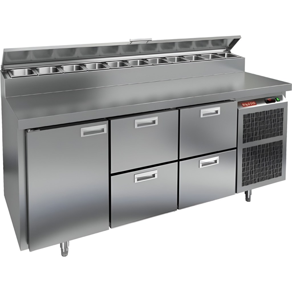 Каталог оборудования Холодильное оборудованиеСтолы охлаждаемыеСтолы холодильные для пиццыСтол холодильный для пиццы HiCold PZ2-122GN (1/6) Стол холодильный для пиццы HiCold PZ2-122GN (1/6) Код товара: 064-756 Поделиться: WhatsAppTelegram СравнитьДобавить в КПВ избранное 0 275 572 ₽ В корзину 0 шт Под заказСамовывоз сегодня бесплатно Взять в кредит Купить в лизинг Получить консультацию в WhatsApp Описание Характеристики Отзывы 0 Стол холодильный для пиццы HiCold PZ2-122GN (1/6) предназначен для кухонь и предприятий общественного питания. Он используется для раскатки теста, подготовки ингредиентов для пиццы, салатов и других блюд, а также для охлаждения и кратковременного хранения скоропортящихся продуктов. Модель совмещает нержавеющую рабочую поверхность и охлаждаемый отсек с 1 дверью и 4 ящиками, обеспечивая удобный доступ к ингредиентам и эффективное хранение. Особенности: Динамическая система охлаждения для равномерного поддержания температуры Автоматическая оттайка для удобного обслуживания Электронная панель управления для точной настройки параметров Вместительная внутренняя полка формата GN 1/1 (размер 530×325 мм) 1 дверь и 4 вместительных ящика для хранения ингредиентов Автоматические доводчики дверей с фиксатором открытого положения Легкозаменяемые магнитные уплотнители для герметичности Открытая агрегатная часть для легкого доступа к компонентам Регулируемые по высоте ножки для устойчивости Нержавеющая столешница глубиной 486 мм и толщиной 50 мм — устойчива к коррозии, легко моется и гигиенична Толщина теплоизоляции: 50 мм Максимальная глубина гастроемкостей: 100 мм Вместимость салат-бара: 11 гастроемкости Стол холодильный HiCold PZ2-122GN (1/6) — это надежный и функциональный стол для пиццы. Он объединяет рабочую поверхность и охлаждаемый отсек, упрощает хранение и подготовку ингредиентов, обеспечивает удобство работы повара и соответствует стандартам профессиональной кухни. Изображение товара, представленного на фото, может отличаться от его фактического вида. Показать все Габаритные размеры1835×700×1000 ммДиапазон рабочей температурыот +2 до +10 °CРасположение агрегатаБоковое Материал столешницыНержавеющая Тип столаС дверьми и ящиками Тип двериГлухая Объём350 лТип гастроемкостейGN 1/6 Количество дверей1 штКоличество ящиков4 штРазмер полки530×325 ммНапряжение220 ВМощность0,5 кВтТип охлажденияДинамическое Тип оттайкиАвтоматическая Габариты в упаковке2000×850×1140 ммВес нетто172 кгВес брутто210 кгБрендHicoldВсе холодильные столы для пиццы HicoldВсе нержавеющие холодильные столы для пиццы Оставить отзыв Еще никто не оставил отзыв на этот товар Ранее просмотрено Под заказ 260 272 ₽ Стол холодильный для пиццы HiCold PZ2-113GN (1/6) Под заказ 217 162 ₽ Стол холодильный для пиццы HiCold PZE1-112GN (1/3)