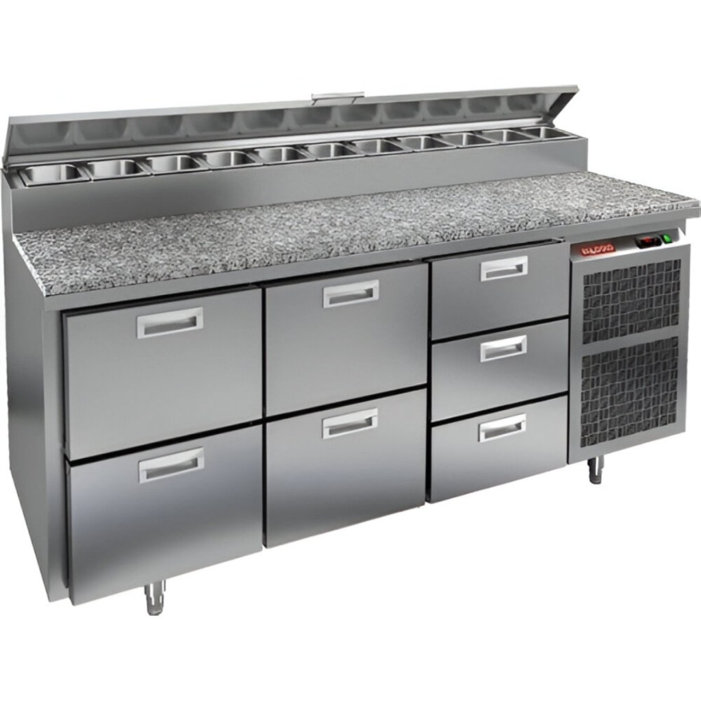 Каталог оборудования Холодильное оборудованиеСтолы охлаждаемыеСтолы холодильные для пиццыСтол холодильный для пиццы HiCold PZ2-223GN (1/6) камень Стол холодильный для пиццы HiCold PZ2-223GN (1/6) камень Код товара: 064-772 Поделиться: WhatsAppTelegram СравнитьДобавить в КПВ избранное 0 353 962 ₽ В корзину 0 шт Под заказСамовывоз сегодня бесплатно Взять в кредит Купить в лизинг Получить консультацию в WhatsApp Описание Характеристики Отзывы 0 Стол холодильный для пиццы HiCold PZ2-223GN (1/6) камень предназначен для профессиональных кухонь и предприятий общественного питания. Он используется для раскатки теста, подготовки ингредиентов для пиццы, салатов и других блюд, а также для охлаждения и кратковременного хранения скоропортящихся продуктов. Модель совмещает гранитную рабочую поверхность и охлаждаемый отсек с 7 выдвижными ящиками, что обеспечивает максимальное удобство доступа к ингредиентам и эффективное распределение хранения. Особенности: Динамическая система охлаждения для равномерного поддержания температуры Автоматическая оттайка для удобного обслуживания Электронная панель управления для точной настройки параметров Вместительная внутренняя полка формата GN 1/1 (размер 530×325 мм) 7 выдвижных ящиков для хранения ингредиентов Легкозаменяемые магнитные уплотнители для герметичности Открытая агрегатная часть для легкого доступа к компонентам Регулируемые по высоте ножки для устойчивости Гранитная столешница глубиной 486 мм и толщиной 50 мм — устойчива к повреждениям, легко моется и гигиенична Толщина теплоизоляции: 50 мм Максимальная глубина гастроемкостей: 100 мм Вместимость салат-бара: 11 гастроемкости Стол холодильный HiCold PZ2-223GN (1/6) камень— это профессиональное решение для кухонь с высоким потоком заказов. Он сочетает прочность, функциональность и удобство, обеспечивая идеальные условия для хранения и подготовки ингредиентов.Изображение товара, представленного на фото, может отличаться от его фактического вида. Показать все Габаритные размеры1835×700×1000 ммДиапазон рабочей температурыот +2 до +10 °CРасположение агрегатаБоковое Материал столешницыГранитная Тип столаС ящиками Объём505 лТип гастроемкостейGN 1/6 Количество ящиков7 штРазмер полки530×325 ммНапряжение220 ВМощность0,5 кВтТип охлажденияДинамическое Тип оттайкиАвтоматическая Габариты в упаковке2000×850×1140 ммВес нетто172 кгВес брутто248 кгБрендHicoldВсе холодильные столы для пиццы Hicold Оставить отзыв Еще никто не оставил отзыв на этот товар Ранее просмотрено В наличии 11 467 ₽ Тестораскатка-лапшерезка электрическая HURAKAN HKN-NM200J Цена по запросу Витрина морозильная Иней LIDA-LOTUS М 1,8 162 675 ₽ Витрина холодильная Иней LIDA-LOTUS S 2,5 Под заказ Цена по запросу Холодильная витрина МХМ Парабель ВХС-УН внешний угол Под заказ 183 098 ₽ Шкаф холодильный универсальный Arkto V1.0-GD Под заказ 95 180 ₽ Дверь холодильная распашная двустворчатая НТ-РДД-1400*2200/80 Под заказ 166 581 ₽ Стол холодильный для салатов HiCold SL2-111SN (1/6)