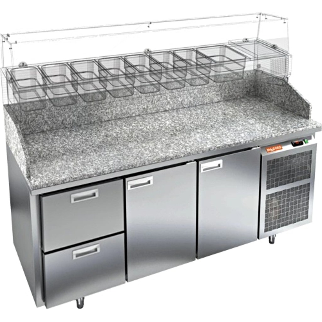 Каталог оборудования Холодильное оборудованиеСтолы охлаждаемыеСтолы холодильные для пиццыСтол холодильный для пиццы HiCold PZ3-211/GN камень Стол холодильный для пиццы HiCold PZ3-211/GN камень Код товара: 065-010 Поделиться: WhatsAppTelegram СравнитьДобавить в КПВ избранное 0 297 352 ₽ В корзину 0 шт Под заказСамовывоз сегодня бесплатно Взять в кредит Купить в лизинг Получить консультацию в WhatsApp Описание Характеристики Отзывы 0 Стол холодильный для пиццы HiCold PZE3-211/GN камень предназначен для использования в пиццериях, кафе, магазинах и ресторанах. Он идеально подходит для раскатки теста, подготовки ингредиентов и кратковременного хранения скоропортящихся продуктов. Витрина приобретается отдельно. Стол сочетает корпус из нержавеющей стали и гранитную столешницу, которая устойчива к механическим и температурным нагрузкам и удобна в работе с тестом. Такая конструкция обеспечивает долговечность, гигиеничность и простоту ухода. Особенности модели: Охлаждение: динамическое — равномерное поддержание температуры Оттайка: автоматическая — удобство и экономия времени Панель управления: электронная — точная настройка температуры Ножки: регулируемые по высоте — устойчивость на неровной поверхности Двери: 2 глухие двери с автоматическими доводчиками и фиксатором открытого положения Ящики: 2 выдвижных ящика — удобное хранение ингредиентов Уплотнители: легкозаменяемые магнитные — герметичность и простота обслуживания Толщина теплоизоляции: 50 мм — сохранение холода и энергоэффективность Рабочая поверхность: глубина 680 мм — удобство работы HiCold PZE3-211/GN камень— это надёжный и функциональный холодильный стол для пиццы, который сочетает прочность, эргономику и эффективное охлаждение. Благодаря гранитной столешнице, корпусу из нержавеющей стали, двум глухим дверям и двум выдвижным ящикам он станет универсальным решением для профессиональной кухни. Изображение товара, представленного на фото, может отличаться от его фактического вида. Показать все Габаритные размеры1835×700×1050 ммДиапазон рабочей температурыот +2 до +10 °CРасположение агрегатаБоковое Материал столешницыГранитная Тип столаС дверьми и ящиками Тип двериГлухая Объём505 лКоличество дверей2 штКоличество ящиков2 штРазмер полки530×325 ммНапряжение220 ВМощность0,5 кВтТип охлажденияДинамическое Тип оттайкиАвтоматическая Габариты в упаковке2000×850×1180 ммВес нетто172 кгВес брутто192 кгБрендHicoldВсе холодильные столы для пиццы HicoldВсе нержавеющие холодильные столы для пиццы Оставить отзыв Еще никто не оставил отзыв на этот товар Ранее просмотрено Под заказ 263 692 ₽ Стол холодильный для пиццы HiCold PZ3-13/SN камень