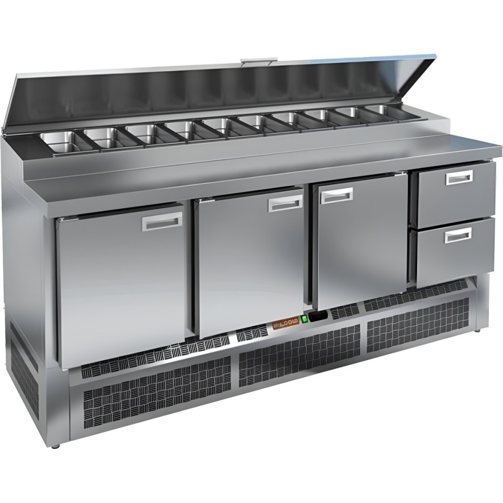 Каталог оборудования Холодильное оборудованиеСтолы охлаждаемыеСтолы холодильные для пиццыСтол холодильный для пиццы HiCold PZE1-1112/GN (1/3) Стол холодильный для пиццы HiCold PZE1-1112/GN (1/3) Код товара: 064-734 Поделиться: WhatsAppTelegram СравнитьДобавить в КПВ избранное 0 250 822 ₽ В корзину 0 шт Под заказСамовывоз сегодня бесплатно Взять в кредит Купить в лизинг Получить консультацию в WhatsApp Описание Характеристики Отзывы 0 Стол холодильный для пиццы HiCold PZE1-1112/GN (1/3) — профессиональное оборудование для предприятий общественного питания и торговли. Он сочетает рабочую поверхность для раскатки теста и подготовки ингредиентов с охлаждаемым блоком для кратковременного хранения скоропортящихся продуктов и напитков. Корпус выполнен из нержавеющей стали, а рабочая столешница — из камня, что обеспечивает долговечность, прочность и удобство при работе с продуктами. Основные особенности: Каменная столешница и корпус из нержавеющей стали — долговечность, устойчивость к повреждениям и лёгкость ухода Динамическая система охлаждения — равномерное распределение холода по всему объёму Автоматическая оттайка — стабильная работа без образования наледи Электронная панель управления — точная настройка температуры 3 дверцы и 2 выдвижных ящика — удобная организация внутреннего пространства Автоматические доводчики дверей и ящиков — комфорт при работе Легкозаменяемые магнитные уплотнители — поддержание герметичности Открытая агрегатная часть — лёгкий доступ к техническим элементам Регулируемые по высоте ножки — установка на неровных поверхностях Максимальная глубина гастроёмкостей: 100 мм Глубина рабочей поверхности: 324 мм Толщина столешницы: 50 мм Толщина теплоизоляции: 50 мм Вместимость салат-бара: до 10 гастроёмкостей Стол холодильный HiCold PZE1-1112/GN (1/3) — надёжный и функциональный холодильный стол для пиццы и салатов. Продуманная организация хранения и удобство эксплуатации обеспечивают быстрый доступ к ингредиентам и высокую производительность на профессиональной кухне.Изображение товара, представленного на фото, может отличаться от его фактического вида. Показать все Габаритные размеры1970×700×990 ммДиапазон рабочей температурыот +2 до +10 °CРасположение агрегатаНижнее Материал столешницыНержавеющая Тип столаС дверьми и ящиками Тип двериГлухая Объём505 лТип гастроемкостейGN 1/3 Количество дверей3 штКоличество ящиков2 штРазмер полки530×325 ммНапряжение220 ВМощность0,5 кВтТип охлажденияДинамическое Тип оттайкиАвтоматическая Габариты в упаковке1680×840×1170 ммВес нетто150 кгВес брутто210 кгБрендHicoldВсе холодильные столы для пиццы HicoldВсе нержавеющие холодильные столы для пиццы Оставить отзыв Еще никто не оставил отзыв на этот товар Ранее просмотрено Под заказ 276 292 ₽ Стол холодильный для пиццы HiCold PZE3-112/SN камень Под заказ 191 782 ₽ Стол холодильный для пиццы HiCold PZE1-111GN (1/3) З Под заказ 297 352 ₽ Стол холодильный для пиццы HiCold PZ3-112/GN камень Под заказ 268 552 ₽ Стол холодильный для пиццы HiCold PZ3-13/GN камень Под заказ 263 692 ₽ Стол холодильный для пиццы HiCold PZ3-13/SN камень