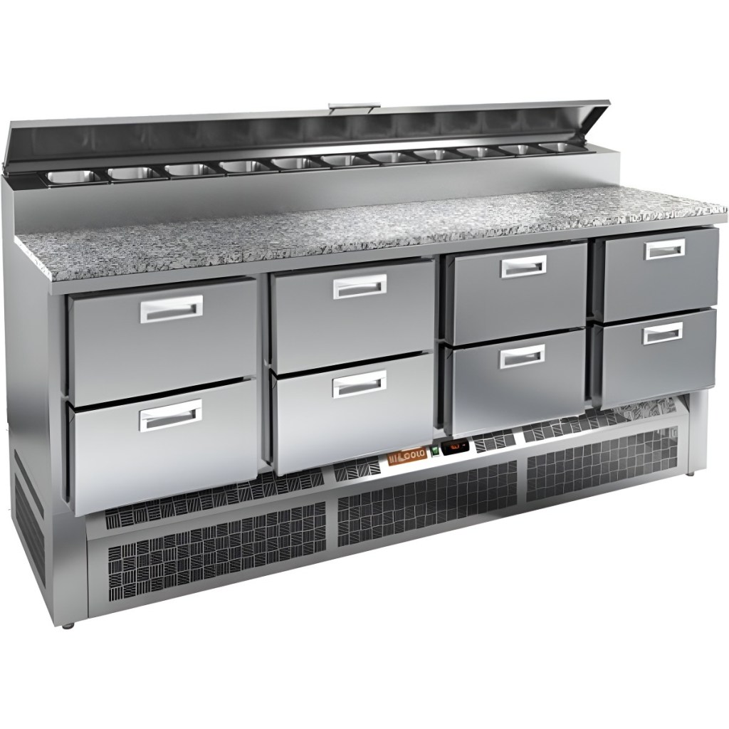 Каталог оборудования Холодильное оборудованиеСтолы охлаждаемыеСтолы холодильные для пиццыСтол холодильный для пиццы HiCold PZE2-2222/GN (1/6H) Стол холодильный для пиццы HiCold PZE2-2222/GN (1/6H) Код товара: 064-964 Поделиться: WhatsAppTelegram СравнитьДобавить в КПВ избранное 0 342 622 ₽ В корзину 0 шт Под заказСамовывоз сегодня бесплатно Взять в кредит Купить в лизинг Получить консультацию в WhatsApp Описание Характеристики Отзывы 0 Стол холодильный для пиццы HiCold PZE2-2222/GN (1/6H) предназначен для использования на предприятиях общественного питания и торговли. Он совмещает охлаждаемый объём и удобную рабочую поверхность, обеспечивая повару быстрый доступ к ингредиентам и комфорт при подготовке блюд — от пиццы и салатов до закусок и десертов. Модель отличается прочной и гигиеничной конструкцией: корпус и столешница изготовлены из нержавеющей стали, что гарантирует износостойкость и лёгкость в уходе даже при интенсивной эксплуатации. Ключевые особенности: Электронная панель управления – точная регулировка температурного режима 8 выдвижных ящиков — позволяют удобно распределить ингредиенты и оптимально организовать пространство для хранения продуктов Салат-бар на 10 гастроемкостей – удобное размещение и быстрый доступ к ингредиентам Автоматические доводчики дверей с фиксатором открытого положения – комфорт при работе Легкозаменяемые магнитные уплотнители – надёжная герметизация и простота обслуживания Открытая агрегатная часть – лёгкий доступ для технического обслуживания Регулируемые по высоте ножки – устойчивость на разных типах покрытия Максимальная глубина гастроемкостей: 100 мм Глубина рабочей поверхности: 486 мм Толщина столешницы: 50 мм Hicold PZE2-2222/GN (1/6H) — универсальный стол для пиццы, сочетающий вместительное охлаждение и рабочую поверхность из нержавеющей стали. Подходит для ресторанов, кафе и пиццерий, где важно удобство, гигиена и надёжность оборудования.Изображение товара, представленного на фото, может отличаться от его фактического вида. Показать все Габаритные размеры1970×700×990 ммДиапазон рабочей температурыот +2 до +10 °CРасположение агрегатаНижнее Материал столешницыНержавеющая Тип столаС ящиками Объём505 лТип гастроемкостейGN 1/6 Количество ящиков8 штРазмер полки530×325 ммНапряжение220 ВМощность0,46 кВтТип охлажденияДинамическое Тип оттайкиАвтоматическая СтолешницаС бортом Габариты в упаковке2200×850×1180 ммВес нетто100 кгВес брутто135 кгБрендHicold Оставить отзыв Еще никто не оставил отзыв на этот товар Ранее просмотрено В наличии 231 561 ₽ Стол холодильный для пиццы HiCold PZE1-1111/GN стекло В наличии 68 493 ₽ Витрина холодильная МХМ Илеть ВХС-1,5 new Под заказ 290 061 ₽ Стол холодильный для пиццы HiCold PZ1-1111GN (1/3) камень Под заказ 135 796 ₽ Витрина холодильная универсальная Premier ВОЛНА ВСУП1-0,42ТУ/Вв-1,6