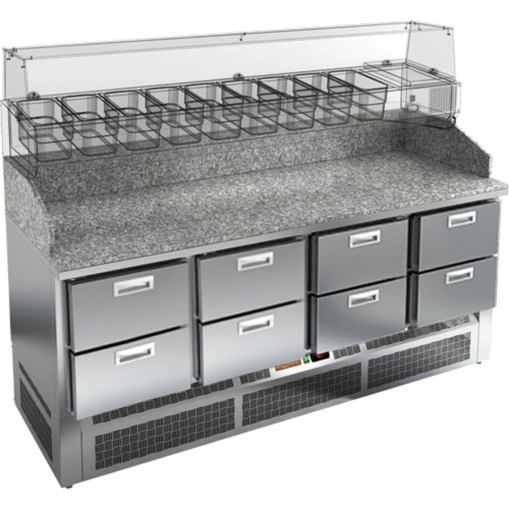 Каталог оборудования Холодильное оборудованиеСтолы охлаждаемыеСтолы холодильные для пиццыСтол холодильный для пиццы HiCold PZE3-222/GN камень Стол холодильный для пиццы HiCold PZE3-222/GN камень Код товара: 064-994 Поделиться: WhatsAppTelegram СравнитьДобавить в КПВ избранное 0 343 342 ₽ В корзину 0 шт Под заказСамовывоз сегодня бесплатно Взять в кредит Купить в лизинг Получить консультацию в WhatsApp Описание Характеристики Отзывы 0 Стол холодильный для пиццы HiCold PZE3-222/GN камень предназначен для использования в пиццериях, кафе, магазинах и ресторанах. Он идеально подходит для раскатки теста, подготовки ингредиентов для пиццы и кратковременного хранения скоропортящихся продуктов. Витрина приобретается отдельно. Особенности модели: Корпус: нержавеющая сталь — прочный, гигиеничный и долговечный Столешница: гранит — устойчива к царапинам, ударам и температурным нагрузкам Охлаждение: динамическое для равномерного поддержания температуры Оттайка: автоматическая — удобство и экономия времени Панель управления: электронная — точная настройка температуры Ножки: регулируемые по высоте — устойчивость на неровной поверхности Ящики: 6 выдвижных ящика — удобное хранение ингредиентов Уплотнители: легкозаменяемые магнитные — герметичность и простота обслуживания Толщина теплоизоляции: 50 мм — сохранение холода и энергоэффективность Рабочая поверхность: глубина 680 мм — удобство работы HiCold PZE3-222/GN камень — надёжный и функциональный холодильный стол с гранитной столешницей, который сочетает прочность, удобство в работе и эффективное охлаждение продуктов. Он станет универсальным решением для профессиональной кухни, где важны скорость, организация и сохранение свежести ингредиентов. Изображение товара, представленного на фото, может отличаться от его фактического вида. Показать все Габаритные размеры1485×700×1050 ммДиапазон рабочей температурыот +2 до +10 °CРасположение агрегатаНижнее Материал столешницыГранитная Тип столаС ящиками Объём375 лКоличество ящиков6 штРазмер полки530×325 ммНапряжение220 ВМощность0,2 кВтТип охлажденияДинамическое Тип оттайкиАвтоматическая Габариты в упаковке1700×850×1280 ммВес нетто227 кгВес брутто280 кгБрендHicoldВсе холодильные столы для пиццы HicoldВсе нержавеющие холодильные столы для пиццы Оставить отзыв Еще никто не оставил отзыв на этот товар Ранее просмотрено Под заказ 277 462 ₽ Стол холодильный для пиццы HiCold PZ2-112GN (1/6) камень