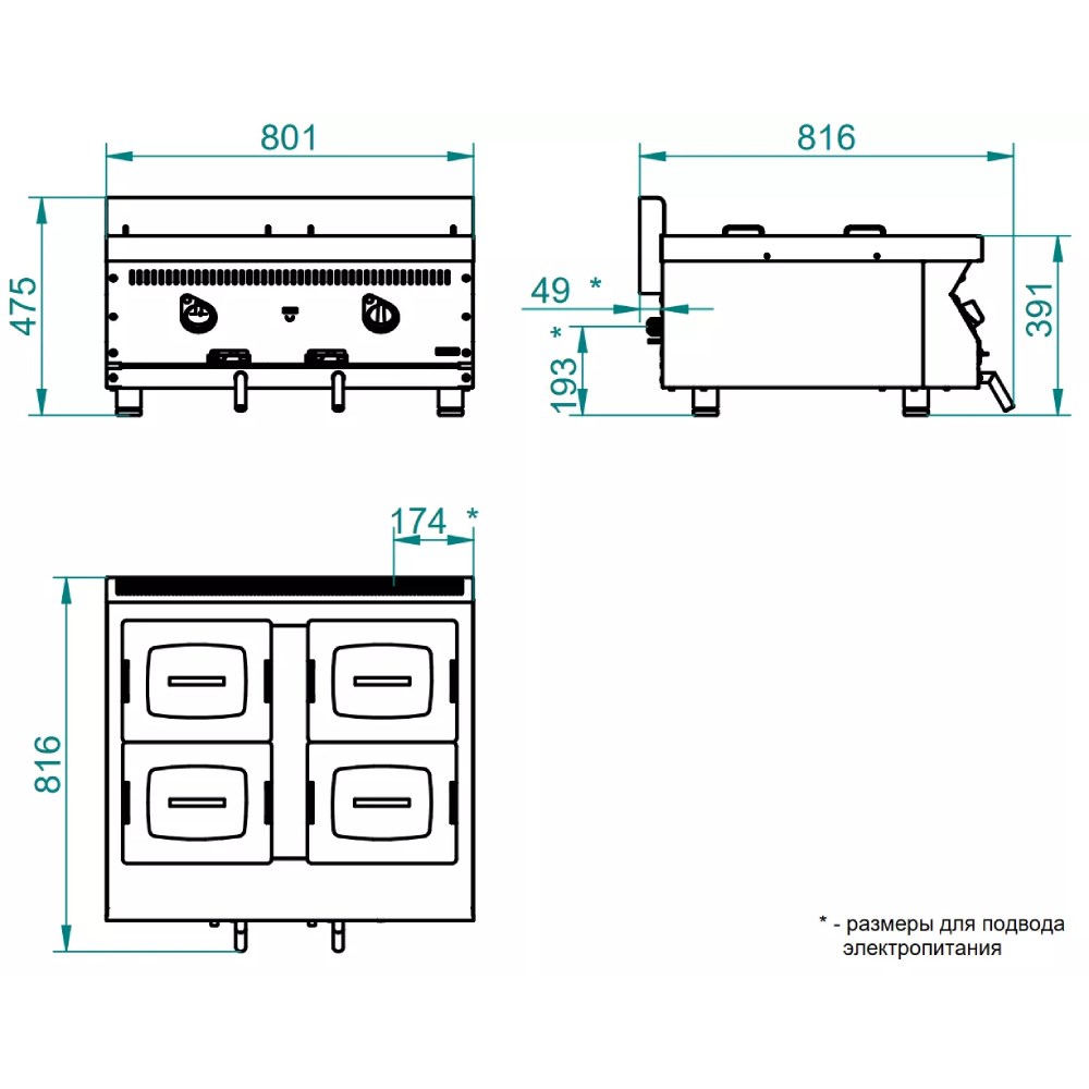 Корпус произведен из прочной нержавеющей стали, устойчивой к влаге и воздействию высоких температур. Для упрощения обслуживания предусмотрен сливной кран, а ножки с возможностью регулировки помогают выровнять оборудование на любой поверхности.