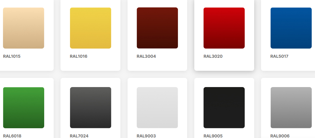Фронтальная панель доступна в 10 цветовых вариантах RAL: 9003, 9005, 9006, 1015, 1016, 3004, 3020, 5017, 6018 и 7024.