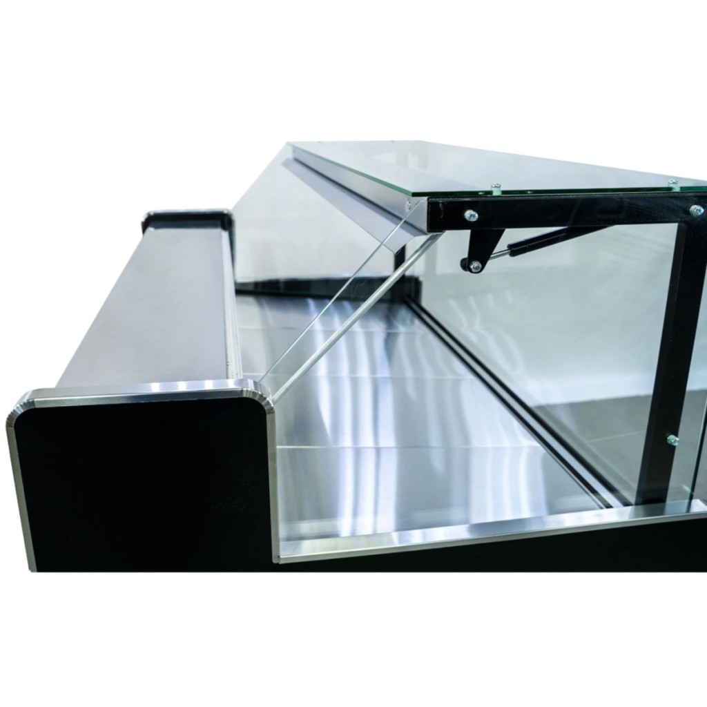 Каталог оборудования Холодильное оборудованиеВитрины холодильныеВитрины холодильные среднетемпературные от 0 до +5 °СВитрина холодильная Ангара 2 КУБ 1,3 динамика Витрина холодильная Ангара 2 КУБ 1,3 динамика Код товара: 066-468 Поделиться: WhatsAppTelegram СравнитьДобавить в КПВ избранное 0 98 058 ₽ В корзину 0 шт Под заказСамовывоз сегодня бесплатно Взять в кредит Купить в лизинг Получить консультацию в WhatsApp Описание Характеристики Отзывы 0 Витрина холодильная Ангара 2 КУБ 1,3 динамика предназначена для демонстрации и кратковременного хранения пищевых продуктов. Обеспечивает поддержание заданной температуры предварительно охлаждённых продуктов и органично вписывается в оформление любого торгового зала или открытой площадки. Особенности: Динамическое охлаждение с равномерным распределением воздушных потоков по всей камере Встроенный компрессорный холодильный агрегат Embraco Aspera или Secop (Danfoss) Надёжный микродвигатель EBM-PAPST Прямое лобовое стекло и боковые стекла толщиной 6 мм, ударопрочные Материалы: поверхность выкладки – нержавеющая сталь, подтоварники – оцинкованная сталь с полимерным покрытием, столешницы – нержавеющая сталь Два вместительных подтоварника для хранения продукции Автоматическое оттаивание испарителя с отводом талой воды в ёмкость в агрегатном отсеке Электронное управление температурой через блок Elitech ETC-974 (2 датчика, усиленное реле) Светодиодное LED-освещение – яркое, энергосберегающее, с низким тепловыделением, включается кнопкой на панели управления Автомат IEK для надёжного включения/выключения витрины Ровное расположение витрины благодаря регулируемым опорам, правильный сбор конденсата и бесшумная работа Равномерное распределение температуры по объёму камеры без образования льда и инея Хладагент – экологичный и нетоксичный R-134a, R-404a Испаритель SEST LUVE от итальянского производителя Комплектация: 2 подтоварника / электронный блок управления Температура окружающей среды: +12…+35 °C Ангара 2 КУБ 1,3 – надёжная и вместительная витрина для демонстрации и хранения предварительно охлаждённых продуктов. Отличается равномерным охлаждением, ярким LED-освещением, автоматическим оттаиванием и прочными материалами, что делает её идеальным решением для больших торговых залов и открытых площадок.Изображение товара, представленного на фото, может отличаться от его фактического вида. Показать все Габаритные размеры1320×980×1260 ммДиапазон рабочей температурыот 0 до +5 °CПлощадь выкладки0,81 м²Длина1320 ммГлубина980 ммВысота1260 ммНоминальная мощность179 ВтРазмер выкладки654 ммПолезный объем190 лХолодообеспечениеВстроенное Тип охлажденияДинамическое Тип оттайкиАвтоматическая Температура эксплуатацииот +12 до +35 °CПодсветкаЕсть ХладагентR134a, R404a Напряжение220 ВРасход электроэнергии в сутки4,3 кВт/сутГабариты в упаковке1500×1350×1200 ммОбъём (брутто)2,43 м³Вес нетто140 кгВес брутто240 кгБрендАнгараВсе витрины холодильные среднетемпературные от 0 до +5 °С 1,3 м Оставить отзыв Еще никто не оставил отзыв на этот товар Ранее просмотрено Под заказ Цена по запросу Витрина холодильная универсальная Dazzl Galaxy 080 94 динамика, прессервы Под заказ 78 608 ₽ Витрина холодильная МХМ Илеть ВХСо-1,5